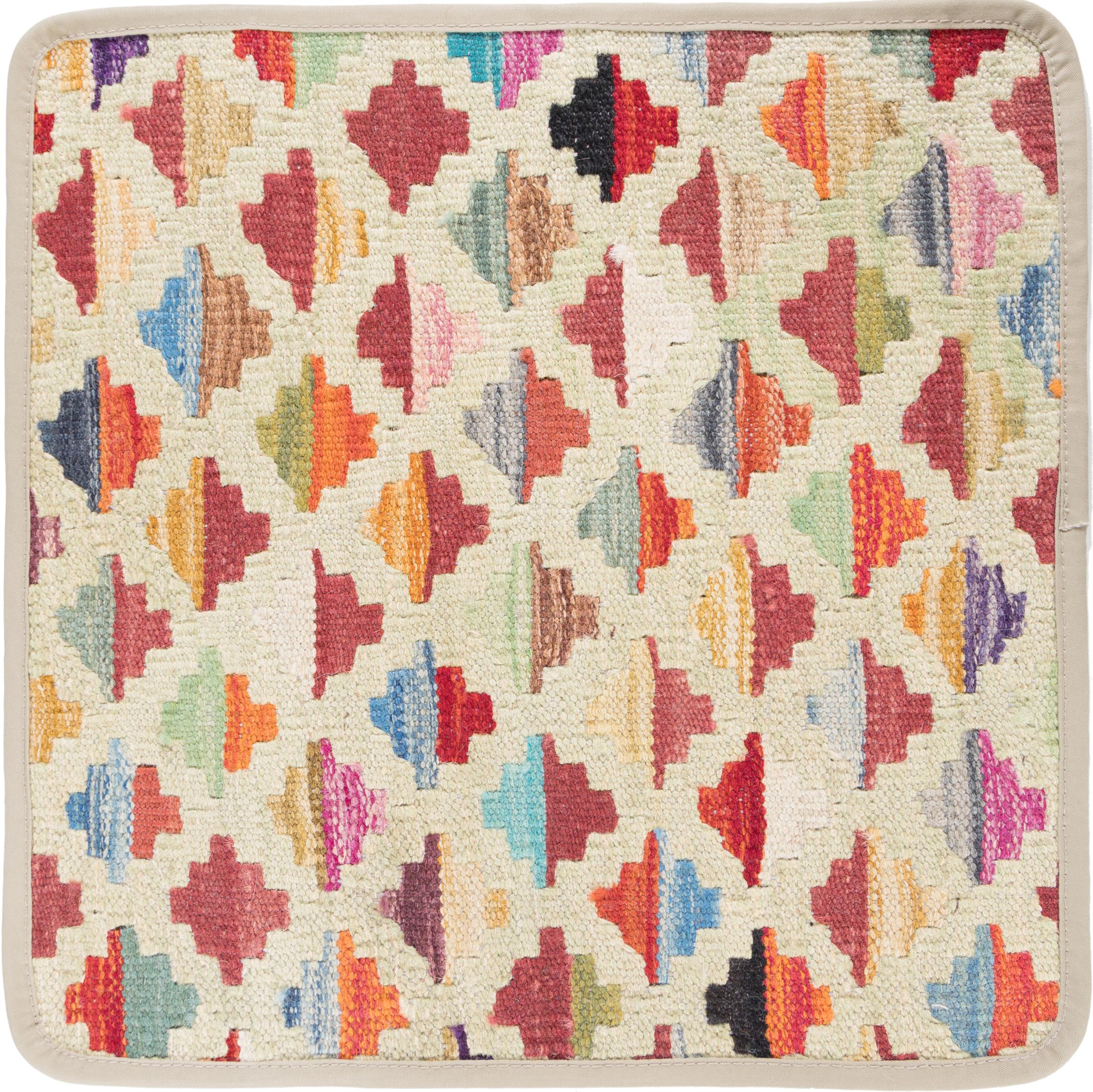 This handwoven Kilim Afghan is a wonderful and unique piece of art. Hard to believe that these modern colours and patterns have already been used centuries ago. This carpet has been woven by hand in old tradition in Afghanistan. It delivers a portion of contemporary history, which you won't find in this specific design a second time. It consists of high-grade natural wool and gives your home a personalised touch.
