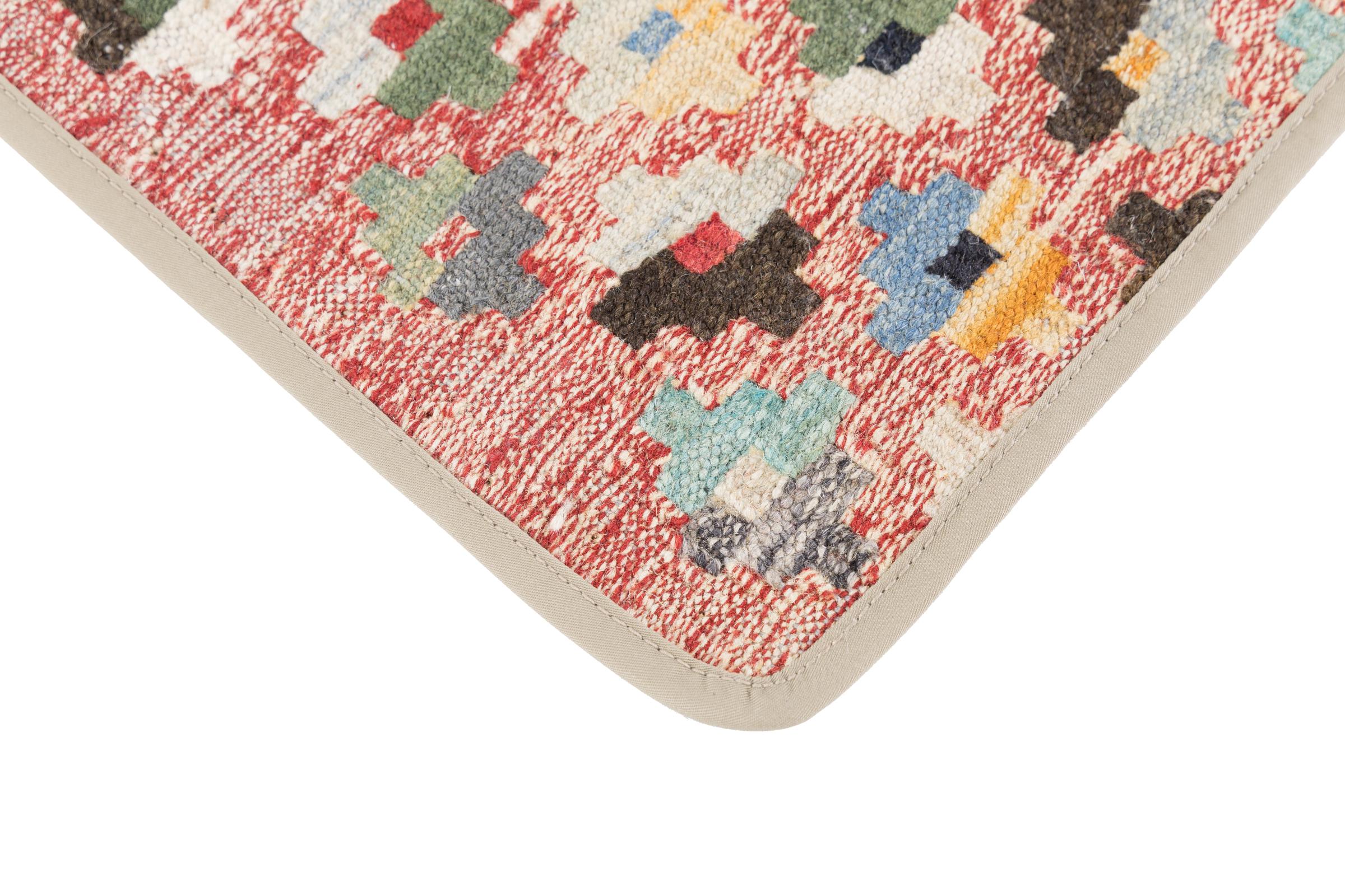 This handwoven Kilim Afghan is a wonderful and unique piece of art. Hard to believe that these modern colours and patterns have already been used centuries ago. This carpet has been woven by hand in old tradition in Afghanistan. It delivers a portion of contemporary history, which you won't find in this specific design a second time. It consists of high-grade natural wool and gives your home a personalised touch.
