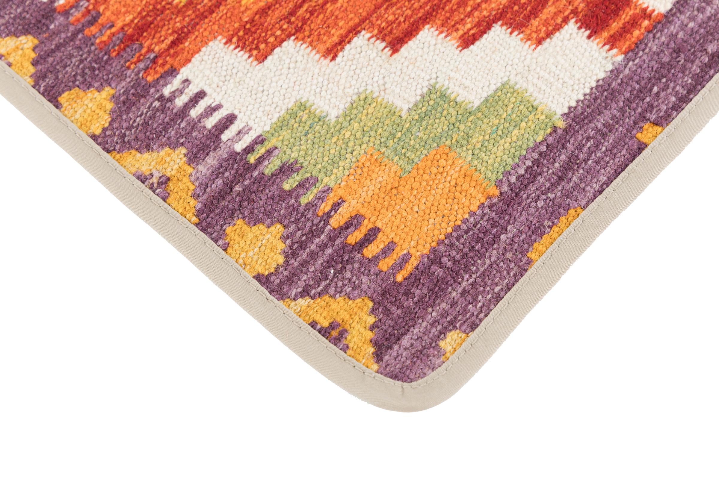 This handwoven Kilim Afghan is a wonderful and unique piece of art. Hard to believe that these modern colours and patterns have already been used centuries ago. This carpet has been woven by hand in old tradition in Afghanistan. It delivers a portion of contemporary history, which you won't find in this specific design a second time. It consists of high-grade natural wool and gives your home a personalised touch.