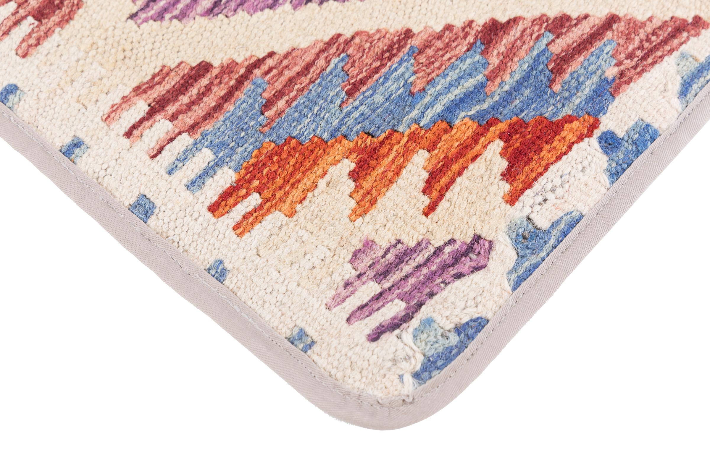 This handwoven Kilim Afghan is a wonderful and unique piece of art. Hard to believe that these modern colours and patterns have already been used centuries ago. This carpet has been woven by hand in old tradition in Afghanistan. It delivers a portion of contemporary history, which you won't find in this specific design a second time. It consists of high-grade natural wool and gives your home a personalised touch.