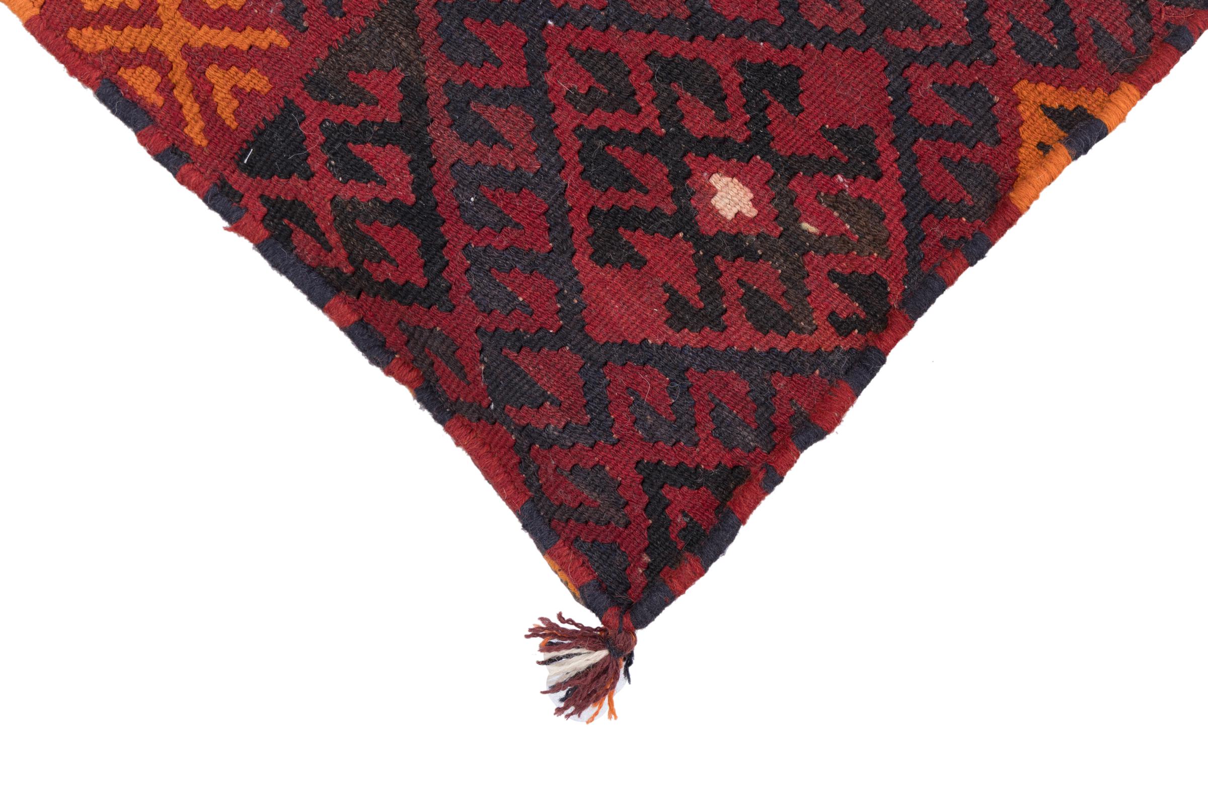 This handwoven Kilim Afghan is a wonderful and unique piece of art. Hard to believe that these modern colours and patterns have already been used centuries ago. This carpet has been woven by hand in old tradition in Afghanistan. It delivers a portion of contemporary history, which you won't find in this specific design a second time. It consists of high-grade natural wool and gives your home a personalised touch.
