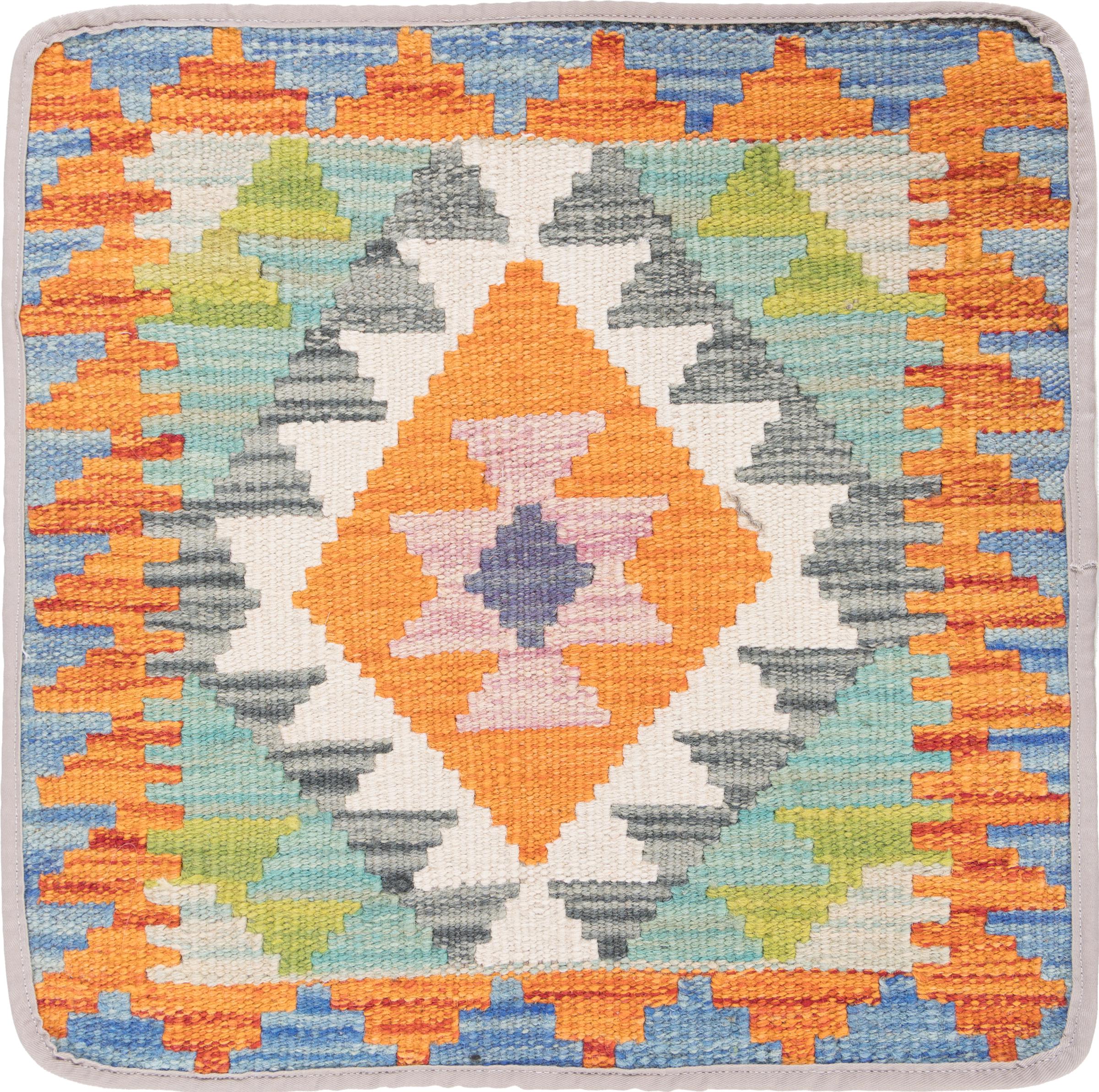 This handwoven Kilim Afghan is a wonderful and unique piece of art. Hard to believe that these modern colours and patterns have already been used centuries ago. This carpet has been woven by hand in old tradition in Afghanistan. It delivers a portion of contemporary history, which you won't find in this specific design a second time. It consists of high-grade natural wool and gives your home a personalised touch.