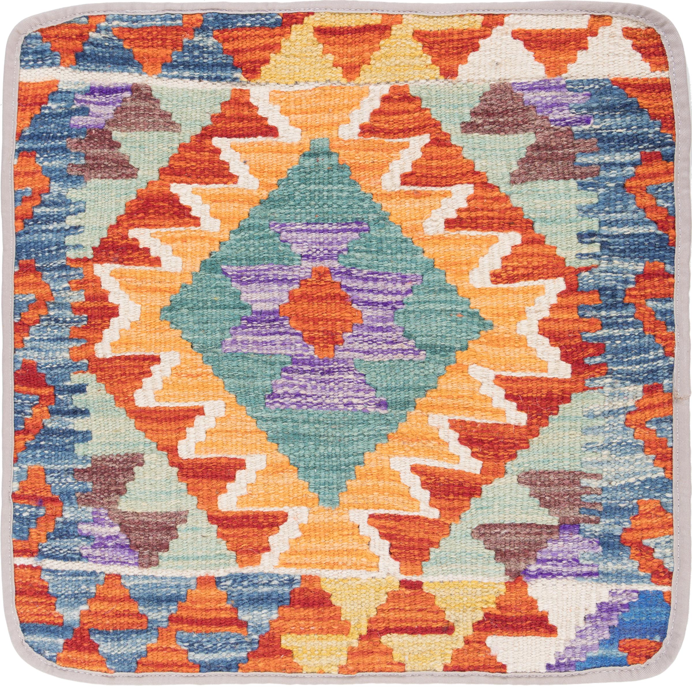 This handwoven Kilim Afghan is a wonderful and unique piece of art. Hard to believe that these modern colours and patterns have already been used centuries ago. This carpet has been woven by hand in old tradition in Afghanistan. It delivers a portion of contemporary history, which you won't find in this specific design a second time. It consists of high-grade natural wool and gives your home a personalised touch.