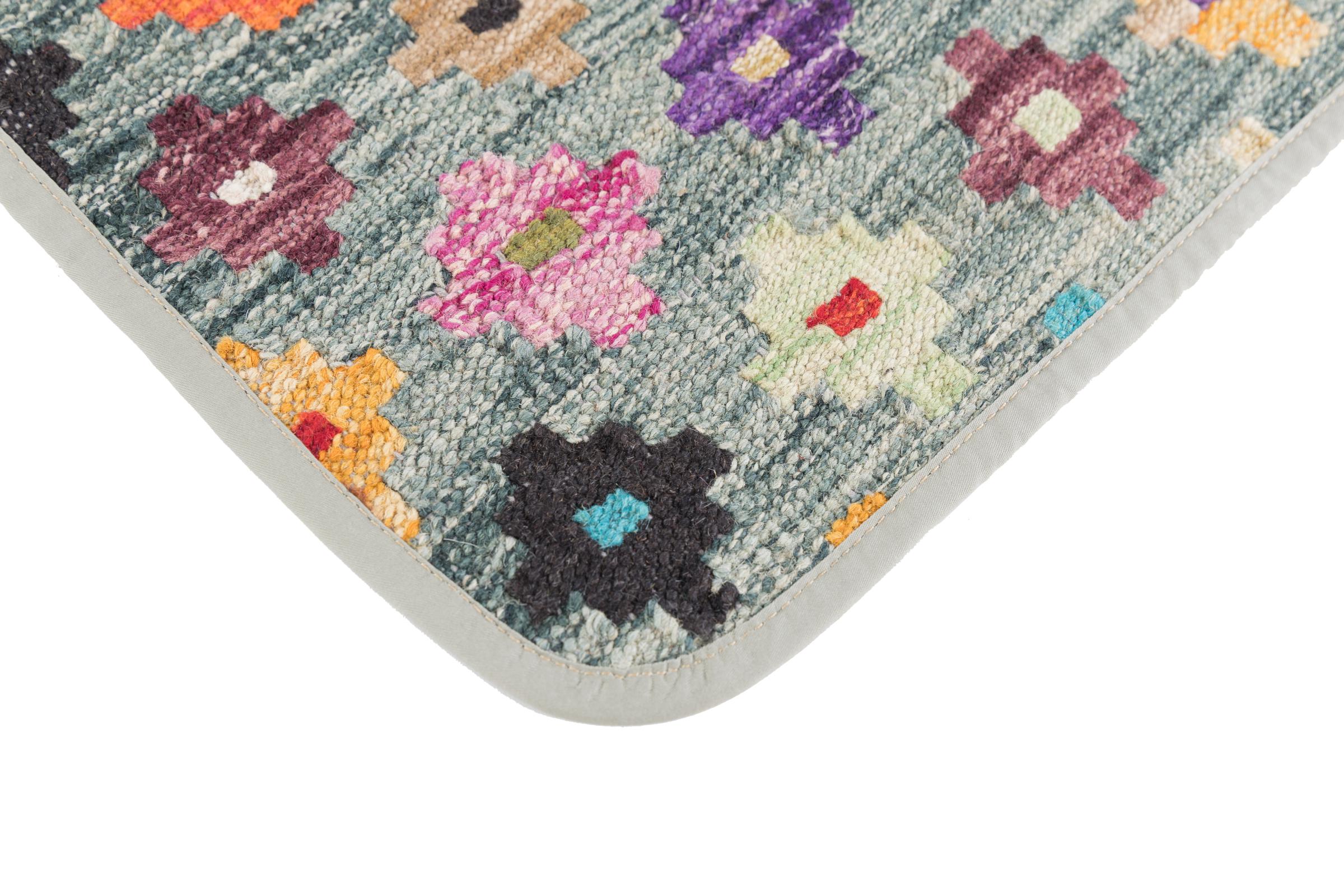 This handwoven Kilim Afghan is a wonderful and unique piece of art. Hard to believe that these modern colours and patterns have already been used centuries ago. This carpet has been woven by hand in old tradition in Afghanistan. It delivers a portion of contemporary history, which you won't find in this specific design a second time. It consists of high-grade natural wool and gives your home a personalised touch.