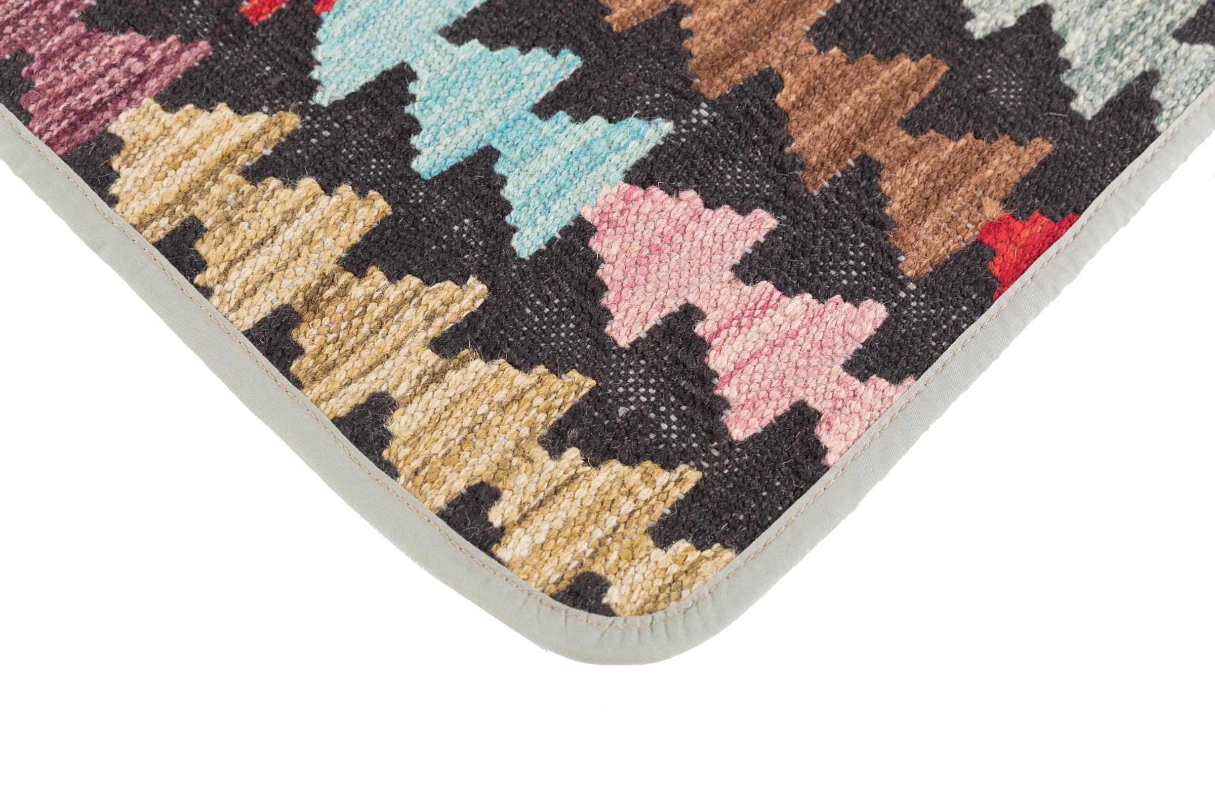 This handwoven Kilim Afghan is a wonderful and unique piece of art. Hard to believe that these modern colours and patterns have already been used centuries ago. This carpet has been woven by hand in old tradition in Afghanistan. It delivers a portion of contemporary history, which you won't find in this specific design a second time. It consists of high-grade natural wool and gives your home a personalised touch.