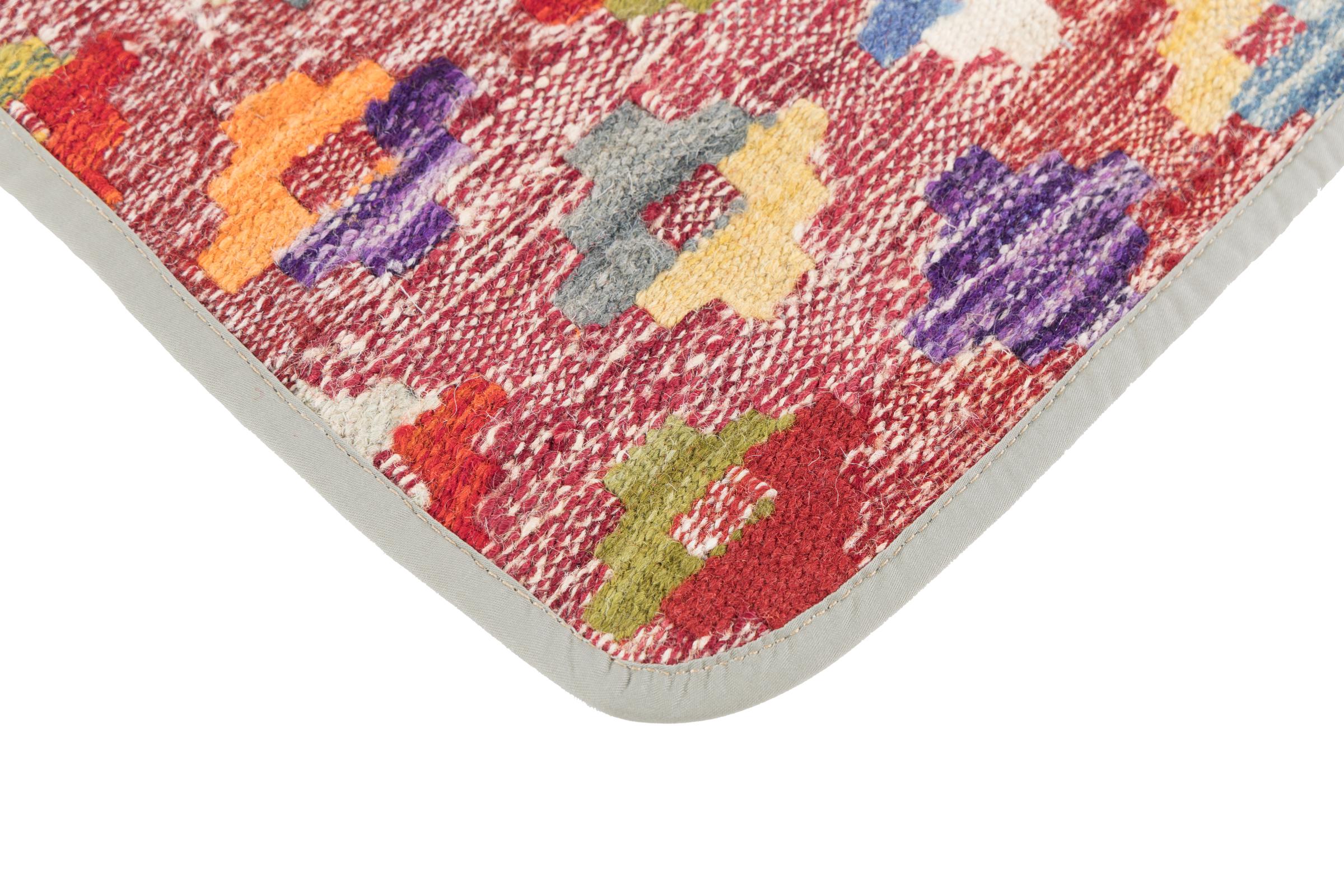 This handwoven Kilim Afghan is a wonderful and unique piece of art. Hard to believe that these modern colours and patterns have already been used centuries ago. This carpet has been woven by hand in old tradition in Afghanistan. It delivers a portion of contemporary history, which you won't find in this specific design a second time. It consists of high-grade natural wool and gives your home a personalised touch.