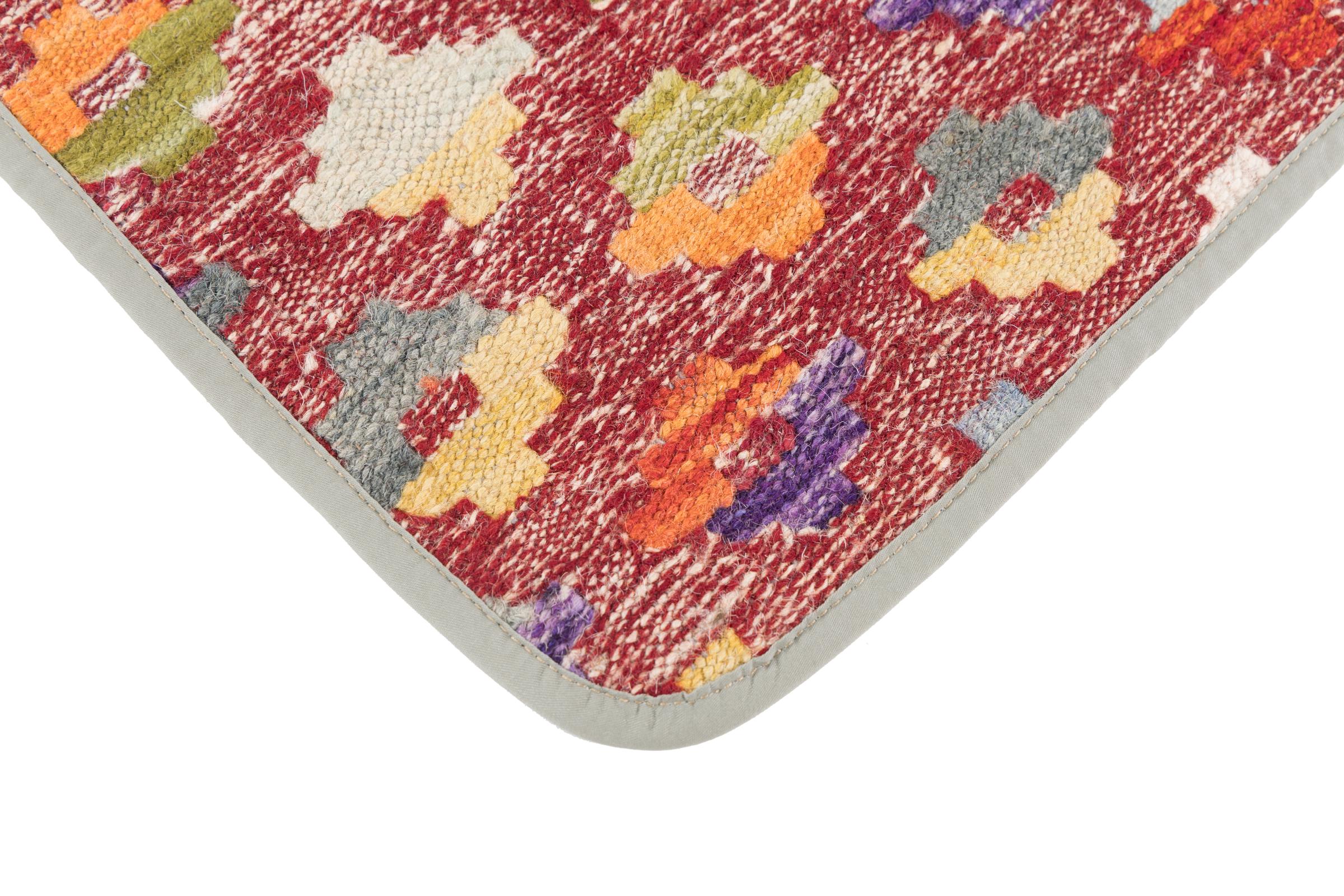 This handwoven Kilim Afghan is a wonderful and unique piece of art. Hard to believe that these modern colours and patterns have already been used centuries ago. This carpet has been woven by hand in old tradition in Afghanistan. It delivers a portion of contemporary history, which you won't find in this specific design a second time. It consists of high-grade natural wool and gives your home a personalised touch.