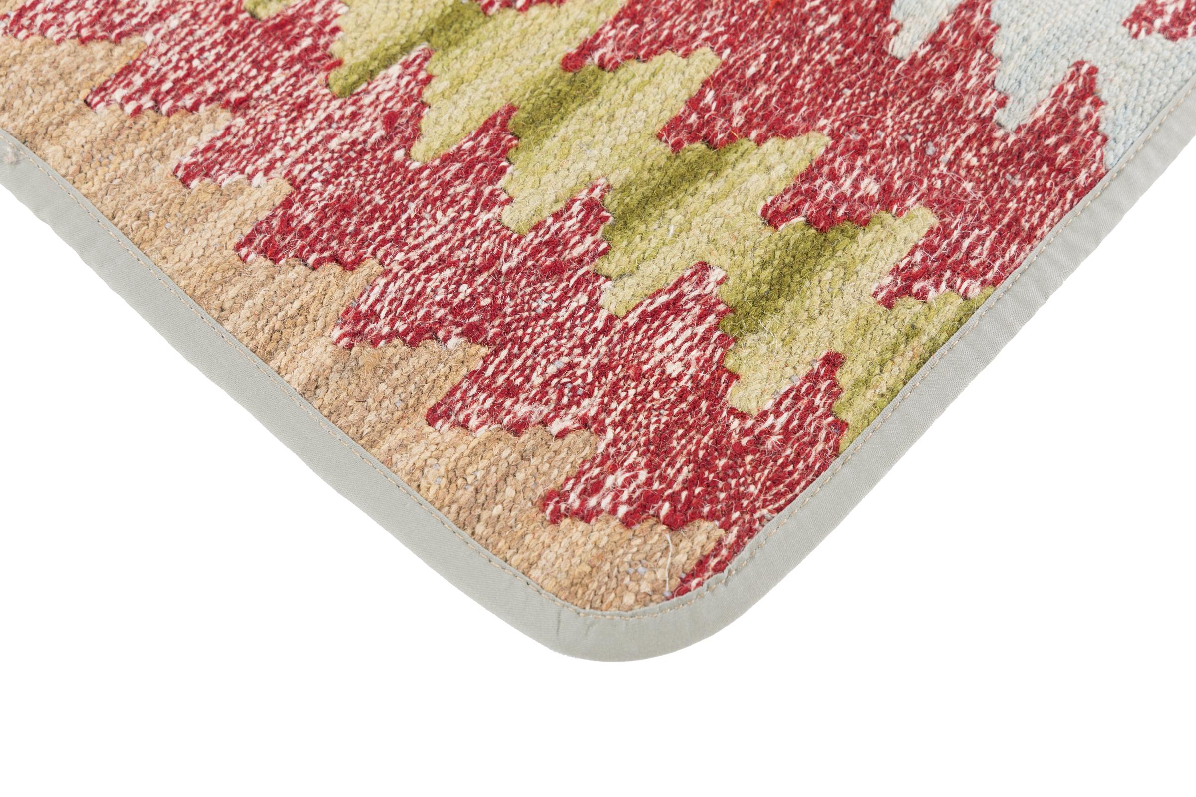 This handwoven Kilim Afghan is a wonderful and unique piece of art. Hard to believe that these modern colours and patterns have already been used centuries ago. This carpet has been woven by hand in old tradition in Afghanistan. It delivers a portion of contemporary history, which you won't find in this specific design a second time. It consists of high-grade natural wool and gives your home a personalised touch.