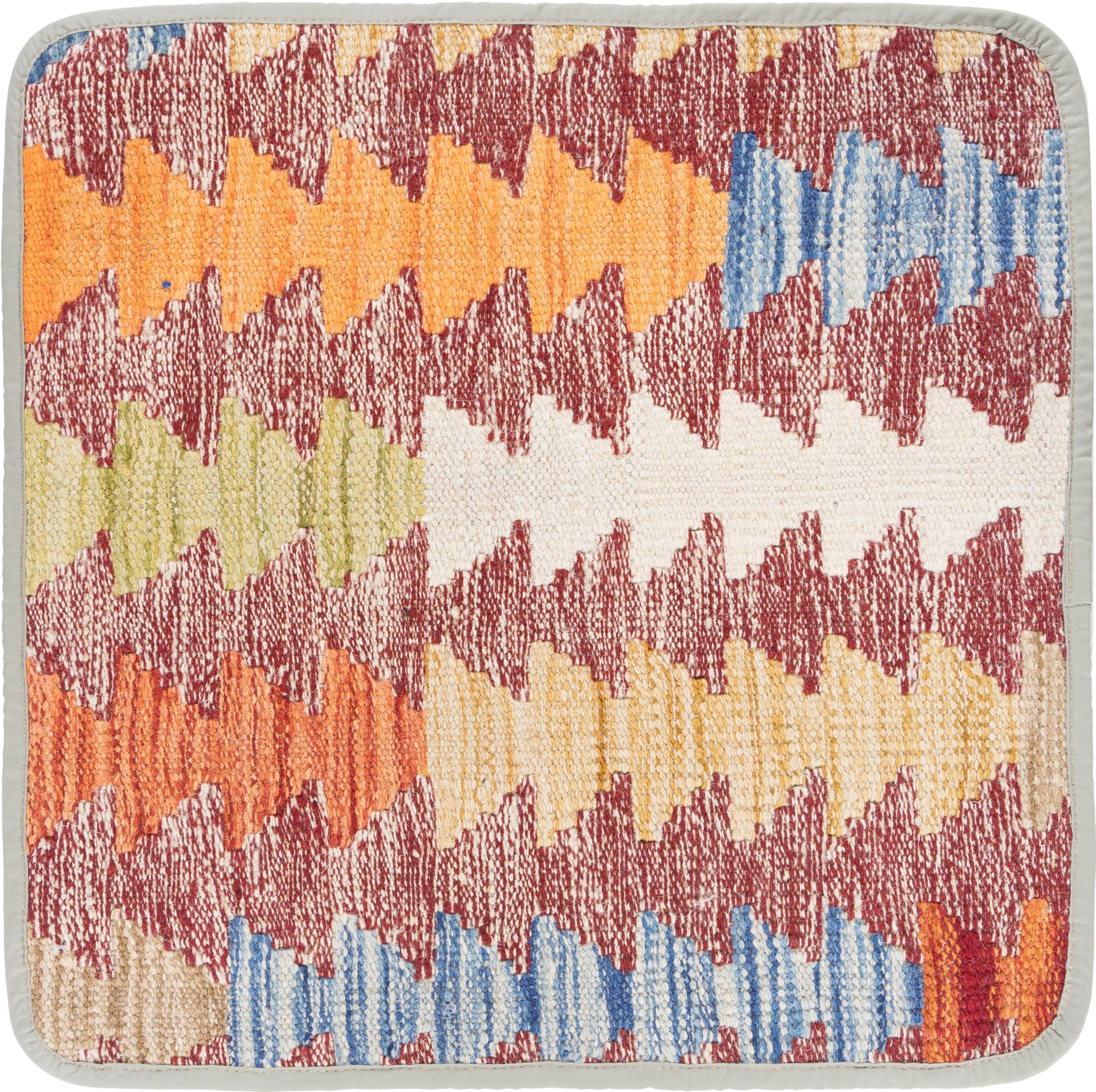 This handwoven Kilim Afghan is a wonderful and unique piece of art. Hard to believe that these modern colours and patterns have already been used centuries ago. This carpet has been woven by hand in old tradition in Afghanistan. It delivers a portion of contemporary history, which you won't find in this specific design a second time. It consists of high-grade natural wool and gives your home a personalised touch.