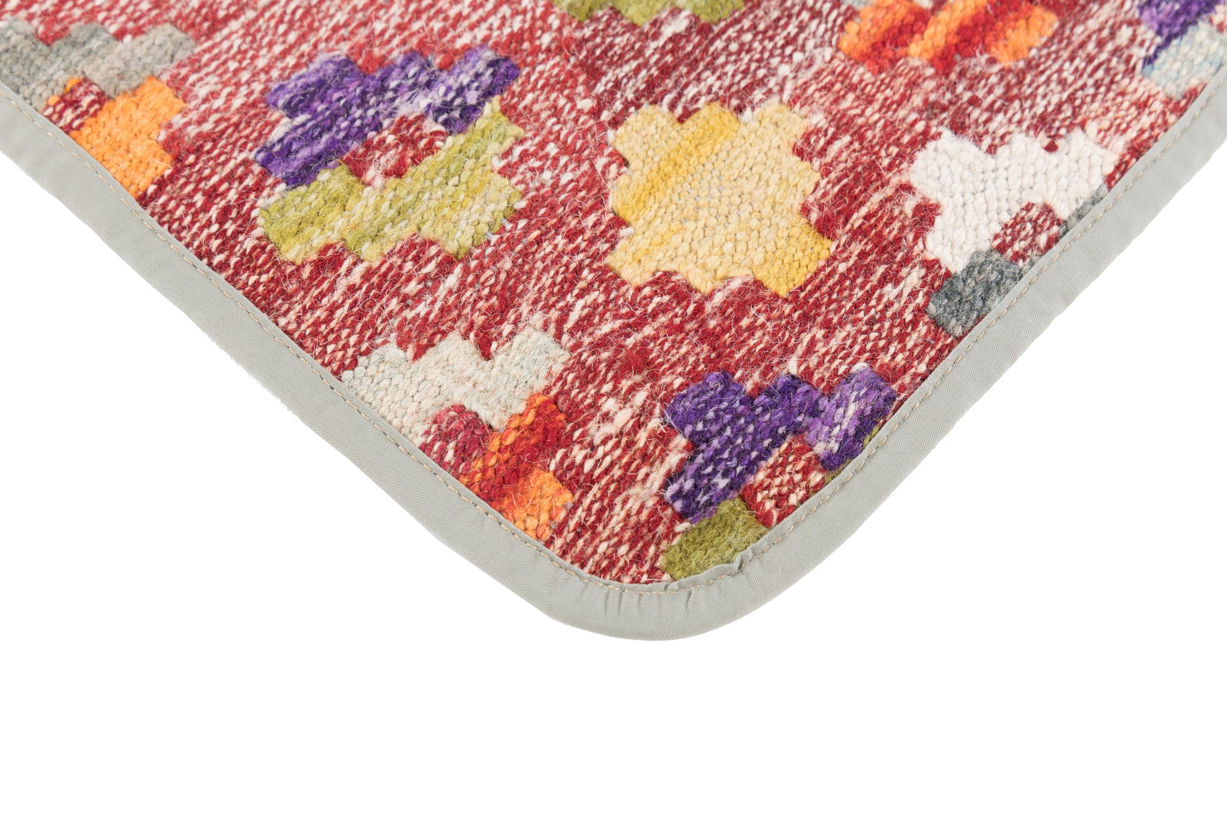This handwoven Kilim Afghan is a wonderful and unique piece of art. Hard to believe that these modern colours and patterns have already been used centuries ago. This carpet has been woven by hand in old tradition in Afghanistan. It delivers a portion of contemporary history, which you won't find in this specific design a second time. It consists of high-grade natural wool and gives your home a personalised touch.