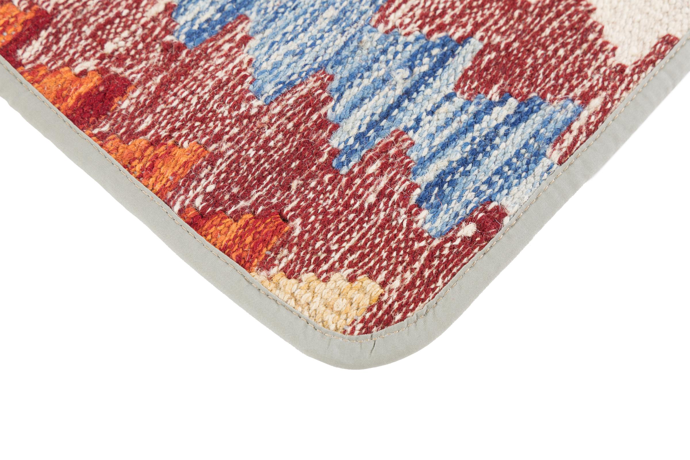 This handwoven Kilim Afghan is a wonderful and unique piece of art. Hard to believe that these modern colours and patterns have already been used centuries ago. This carpet has been woven by hand in old tradition in Afghanistan. It delivers a portion of contemporary history, which you won't find in this specific design a second time. It consists of high-grade natural wool and gives your home a personalised touch.