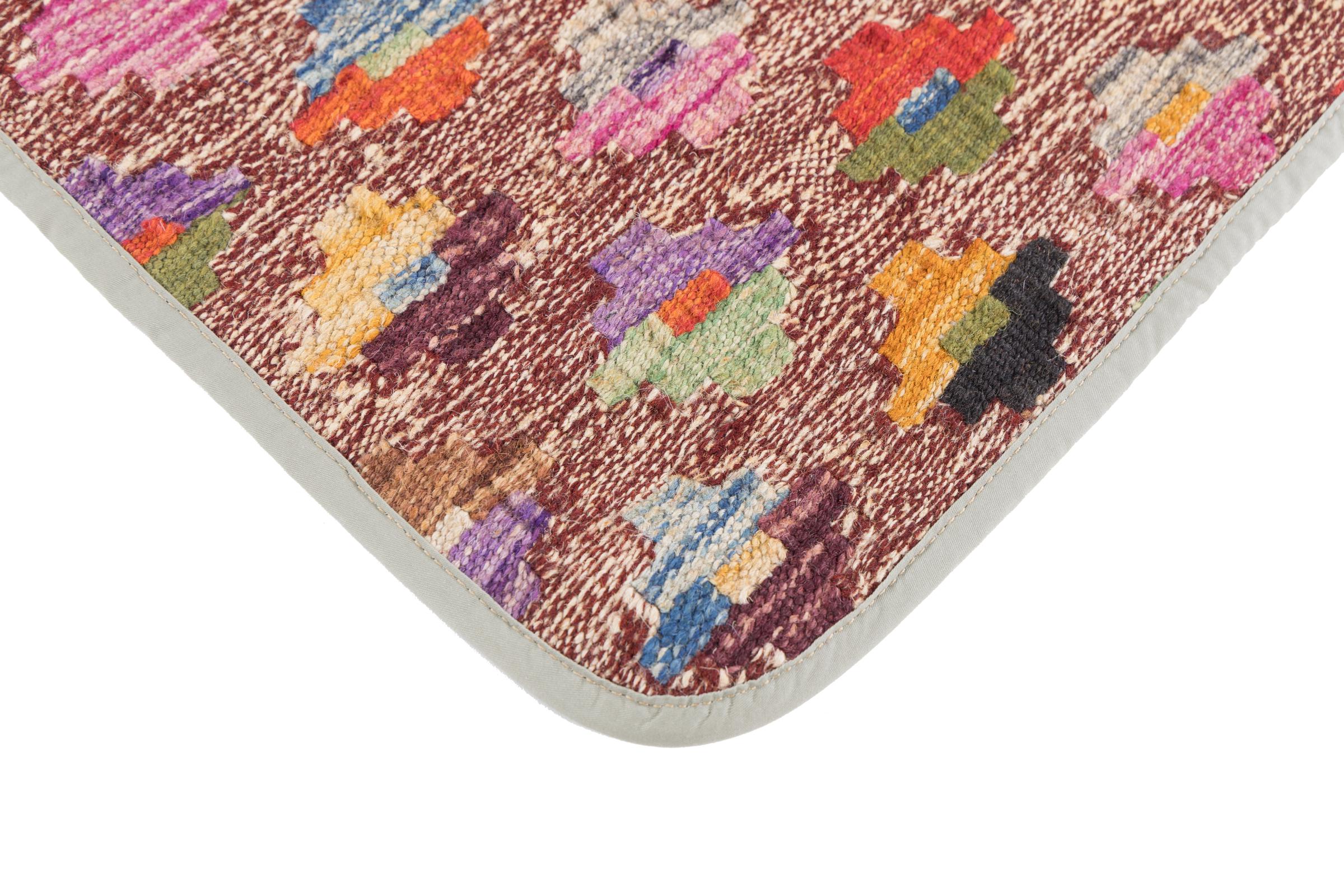 This handwoven Kilim Afghan is a wonderful and unique piece of art. Hard to believe that these modern colours and patterns have already been used centuries ago. This carpet has been woven by hand in old tradition in Afghanistan. It delivers a portion of contemporary history, which you won't find in this specific design a second time. It consists of high-grade natural wool and gives your home a personalised touch.