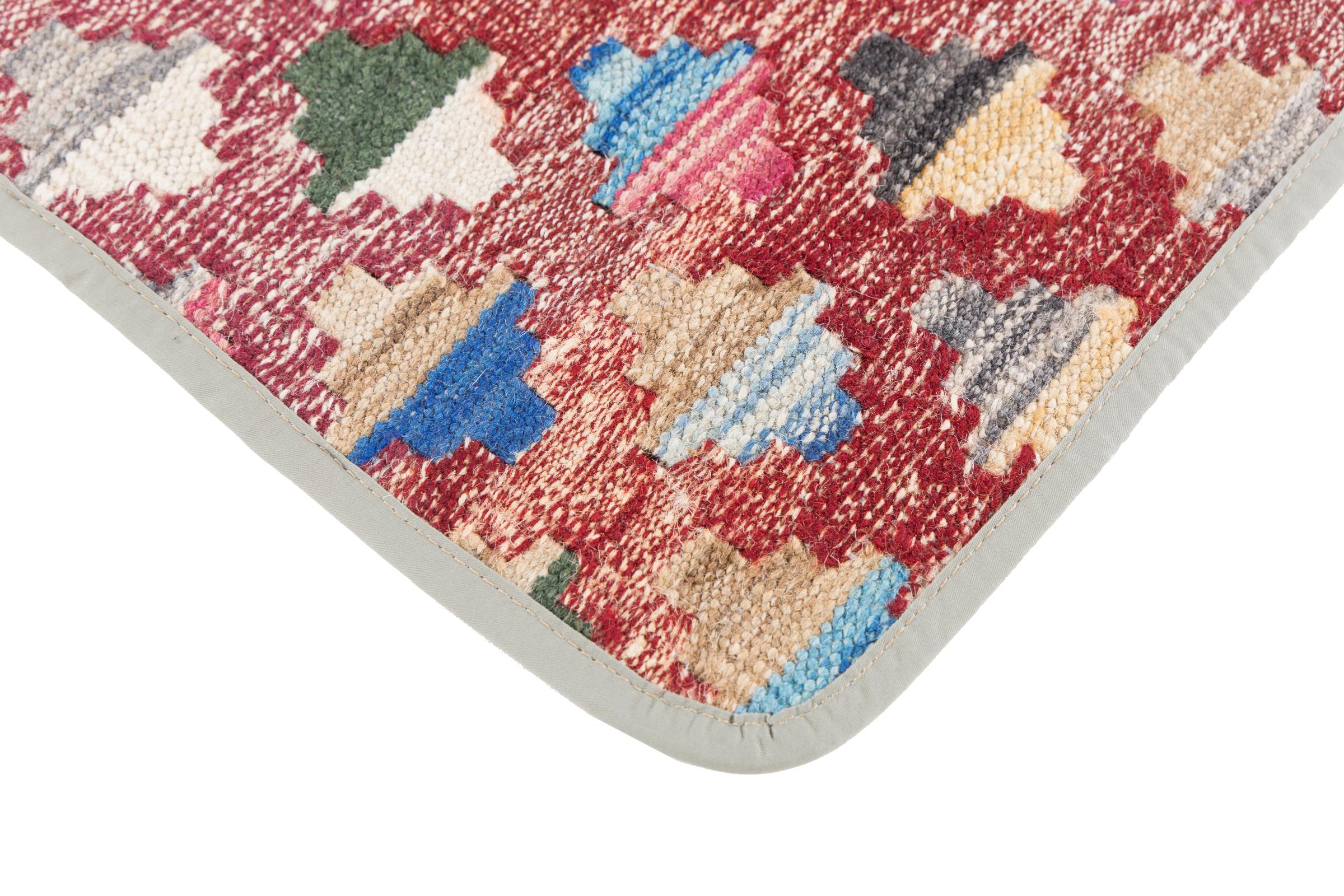 This handwoven Kilim Afghan is a wonderful and unique piece of art. Hard to believe that these modern colours and patterns have already been used centuries ago. This carpet has been woven by hand in old tradition in Afghanistan. It delivers a portion of contemporary history, which you won't find in this specific design a second time. It consists of high-grade natural wool and gives your home a personalised touch.