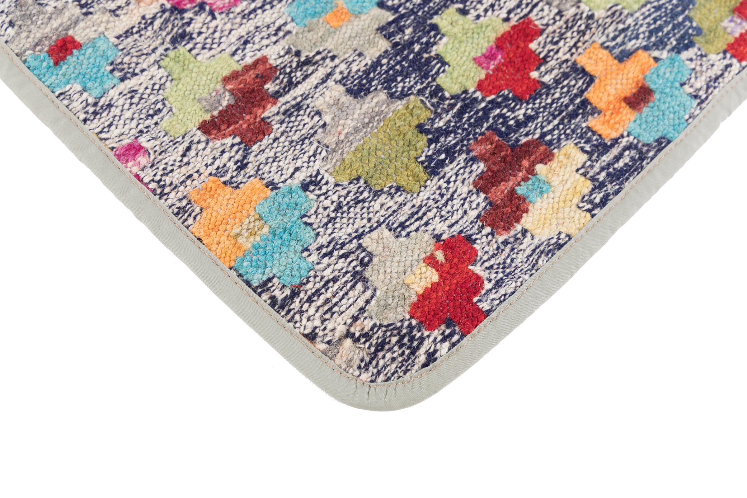 This handwoven Kilim Afghan is a wonderful and unique piece of art. Hard to believe that these modern colours and patterns have already been used centuries ago. This carpet has been woven by hand in old tradition in Afghanistan. It delivers a portion of contemporary history, which you won't find in this specific design a second time. It consists of high-grade natural wool and gives your home a personalised touch.