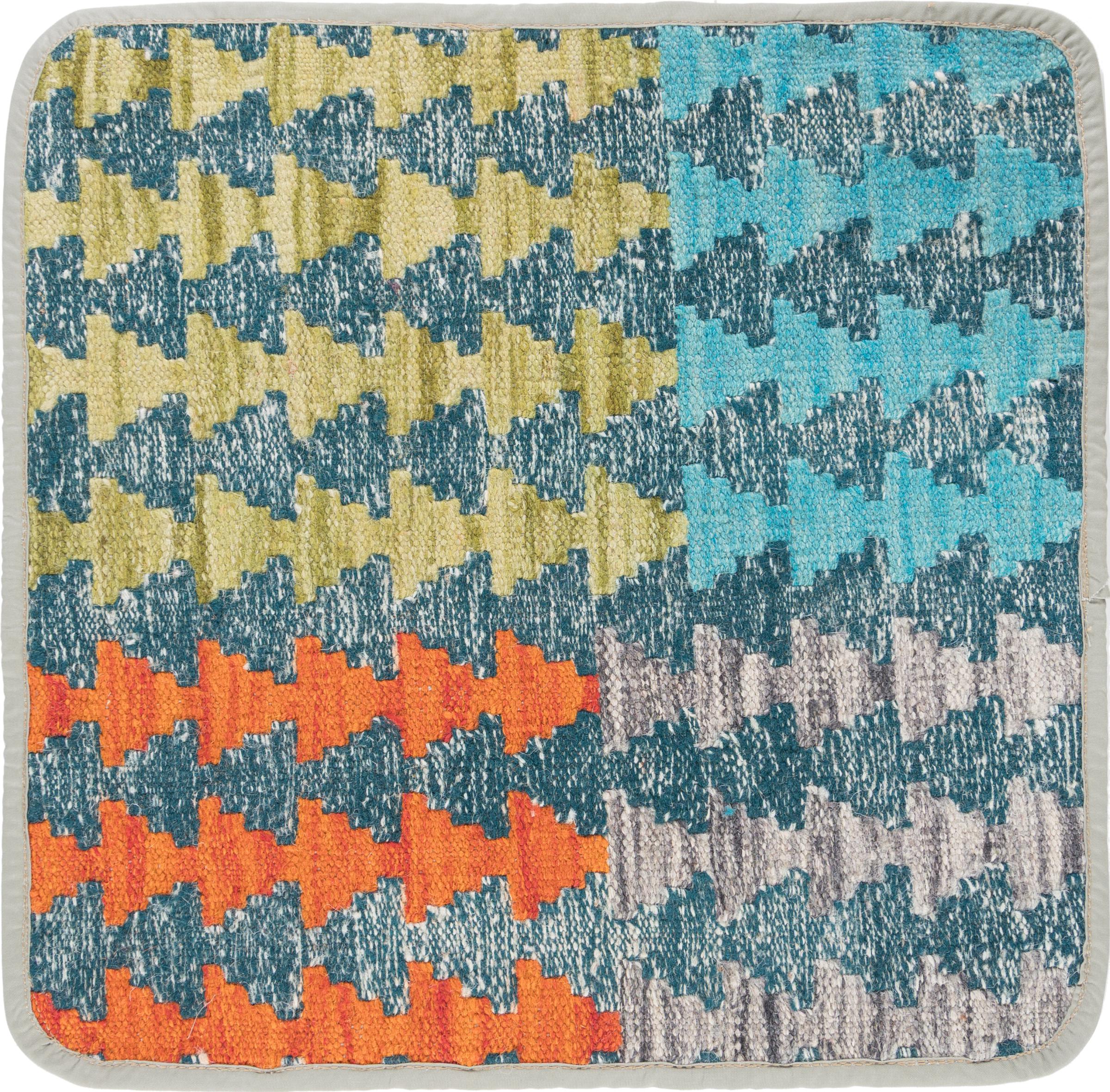 This handwoven Kilim Afghan is a wonderful and unique piece of art. Hard to believe that these modern colours and patterns have already been used centuries ago. This carpet has been woven by hand in old tradition in Afghanistan. It delivers a portion of contemporary history, which you won't find in this specific design a second time. It consists of high-grade natural wool and gives your home a personalised touch.
