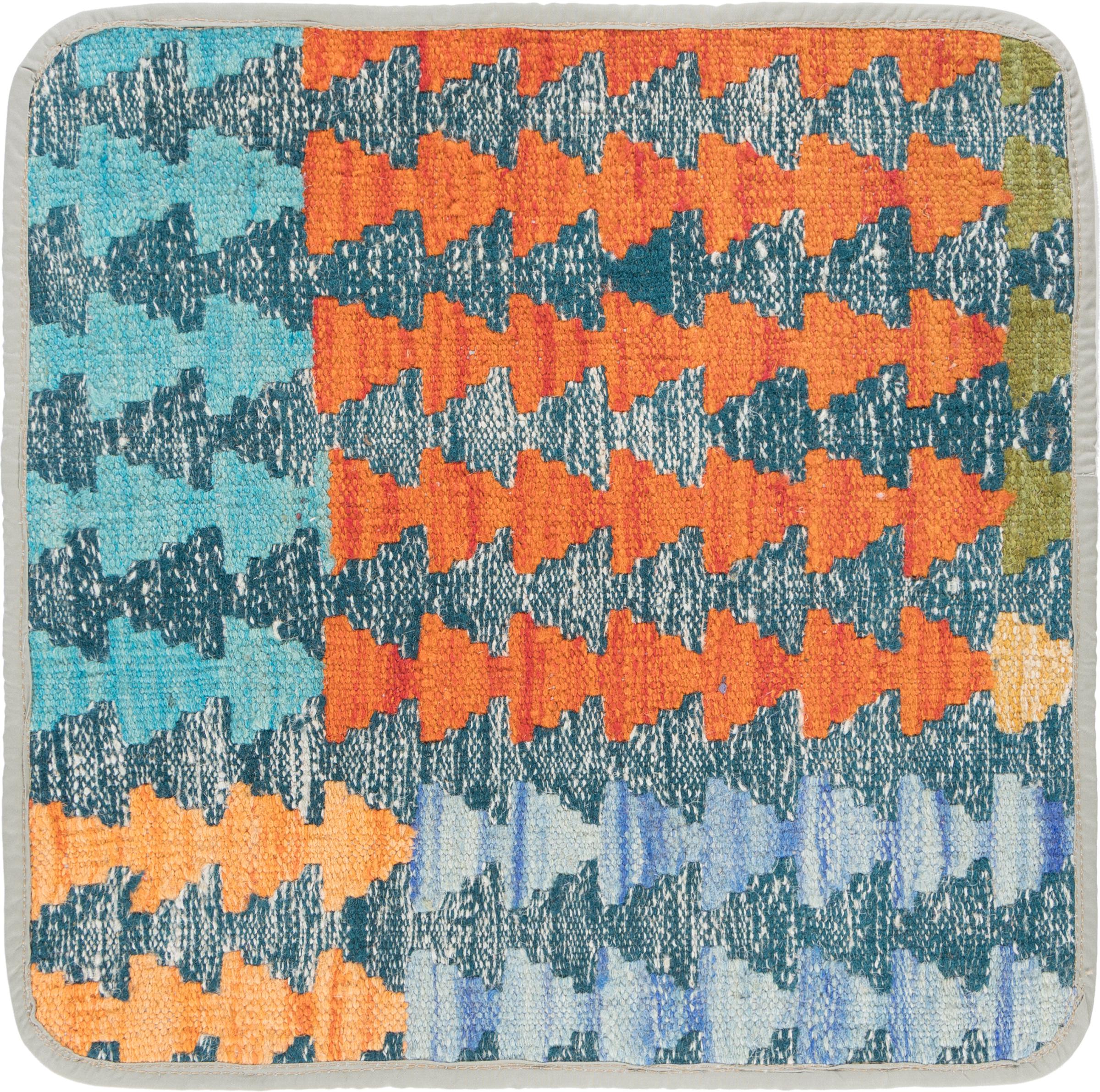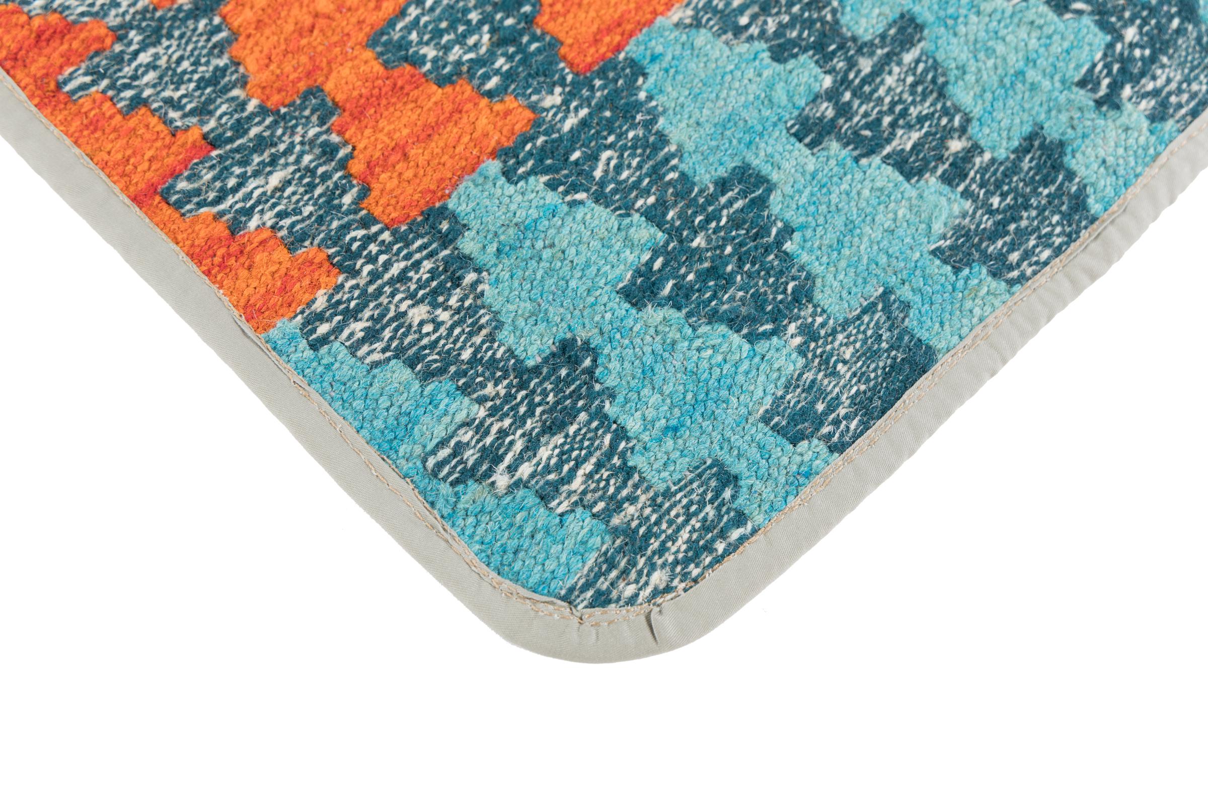 This handwoven Kilim Afghan is a wonderful and unique piece of art. Hard to believe that these modern colours and patterns have already been used centuries ago. This carpet has been woven by hand in old tradition in Afghanistan. It delivers a portion of contemporary history, which you won't find in this specific design a second time. It consists of high-grade natural wool and gives your home a personalised touch.