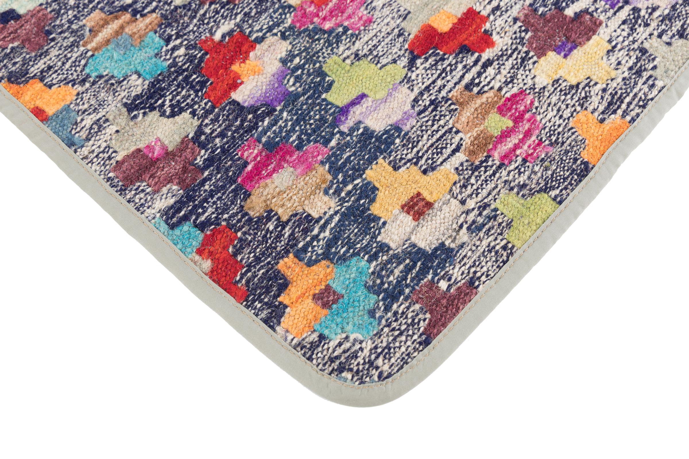 This handwoven Kilim Afghan is a wonderful and unique piece of art. Hard to believe that these modern colours and patterns have already been used centuries ago. This carpet has been woven by hand in old tradition in Afghanistan. It delivers a portion of contemporary history, which you won't find in this specific design a second time. It consists of high-grade natural wool and gives your home a personalised touch.