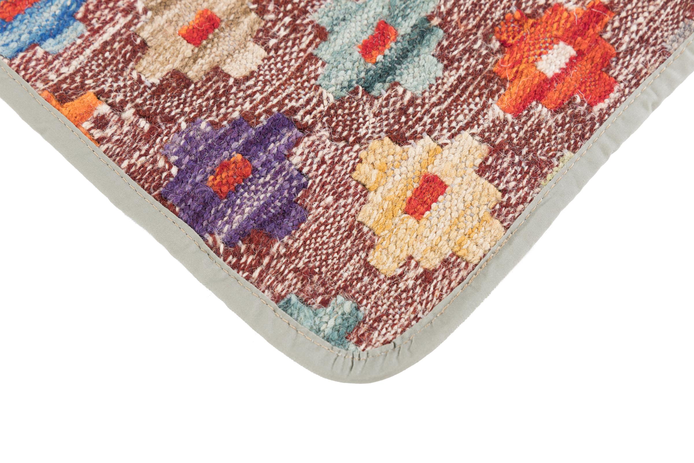 This handwoven Kilim Afghan is a wonderful and unique piece of art. Hard to believe that these modern colours and patterns have already been used centuries ago. This carpet has been woven by hand in old tradition in Afghanistan. It delivers a portion of contemporary history, which you won't find in this specific design a second time. It consists of high-grade natural wool and gives your home a personalised touch.