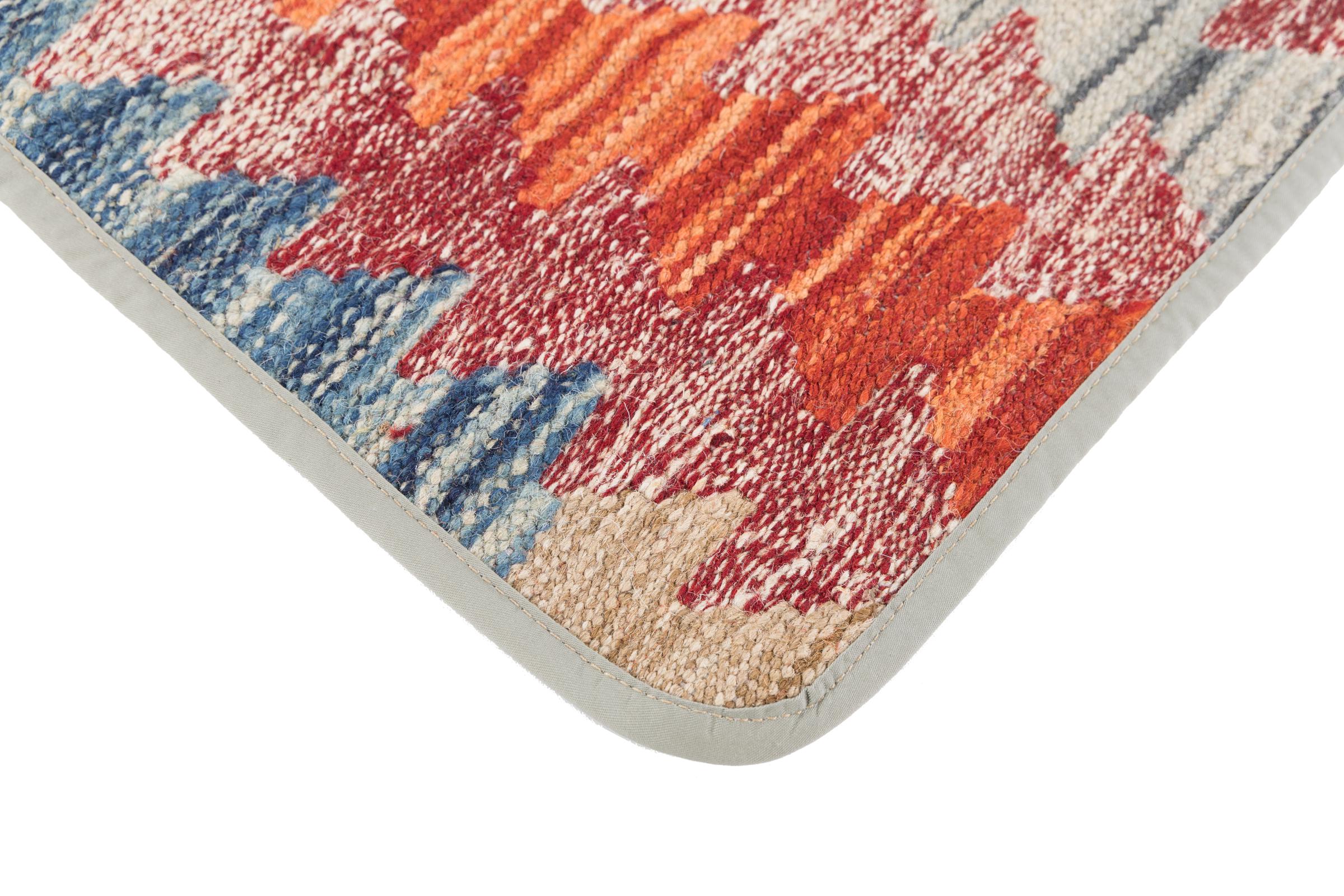 This handwoven Kilim Afghan is a wonderful and unique piece of art. Hard to believe that these modern colours and patterns have already been used centuries ago. This carpet has been woven by hand in old tradition in Afghanistan. It delivers a portion of contemporary history, which you won't find in this specific design a second time. It consists of high-grade natural wool and gives your home a personalised touch.