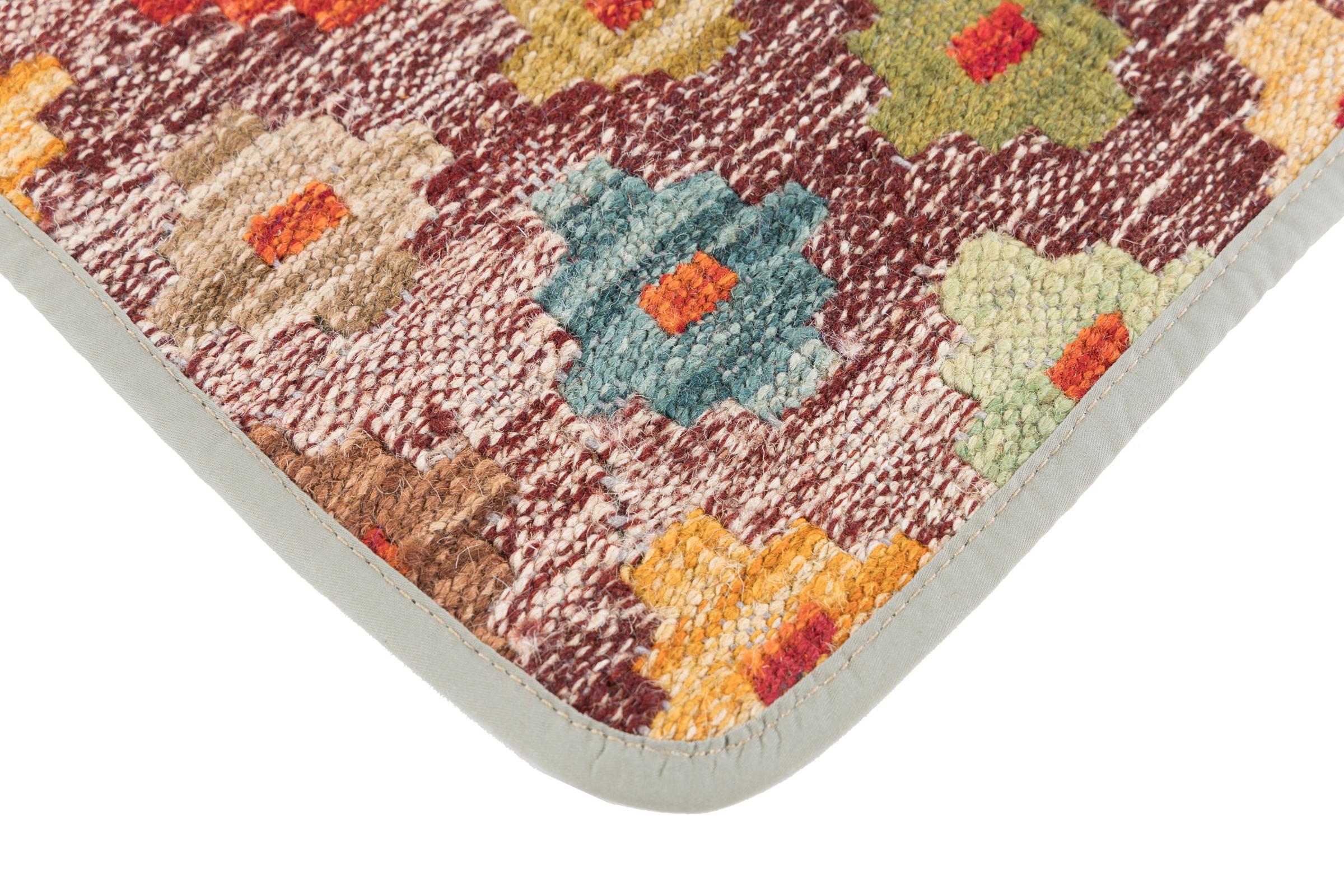 This handwoven Kilim Afghan is a wonderful and unique piece of art. Hard to believe that these modern colours and patterns have already been used centuries ago. This carpet has been woven by hand in old tradition in Afghanistan. It delivers a portion of contemporary history, which you won't find in this specific design a second time. It consists of high-grade natural wool and gives your home a personalised touch.