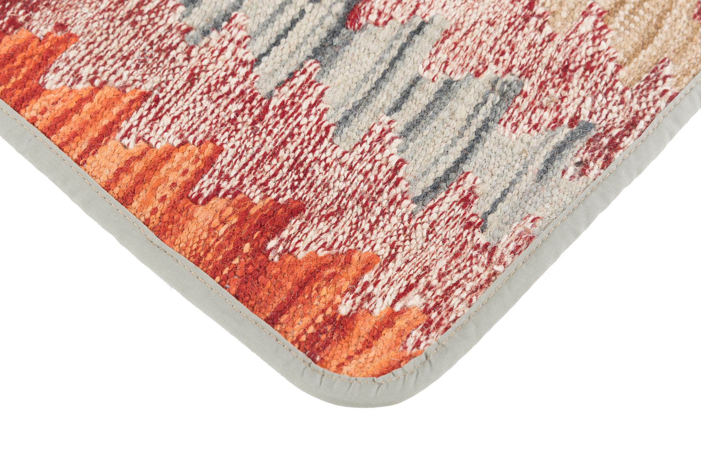 This handwoven Kilim Afghan is a wonderful and unique piece of art. Hard to believe that these modern colours and patterns have already been used centuries ago. This carpet has been woven by hand in old tradition in Afghanistan. It delivers a portion of contemporary history, which you won't find in this specific design a second time. It consists of high-grade natural wool and gives your home a personalised touch.