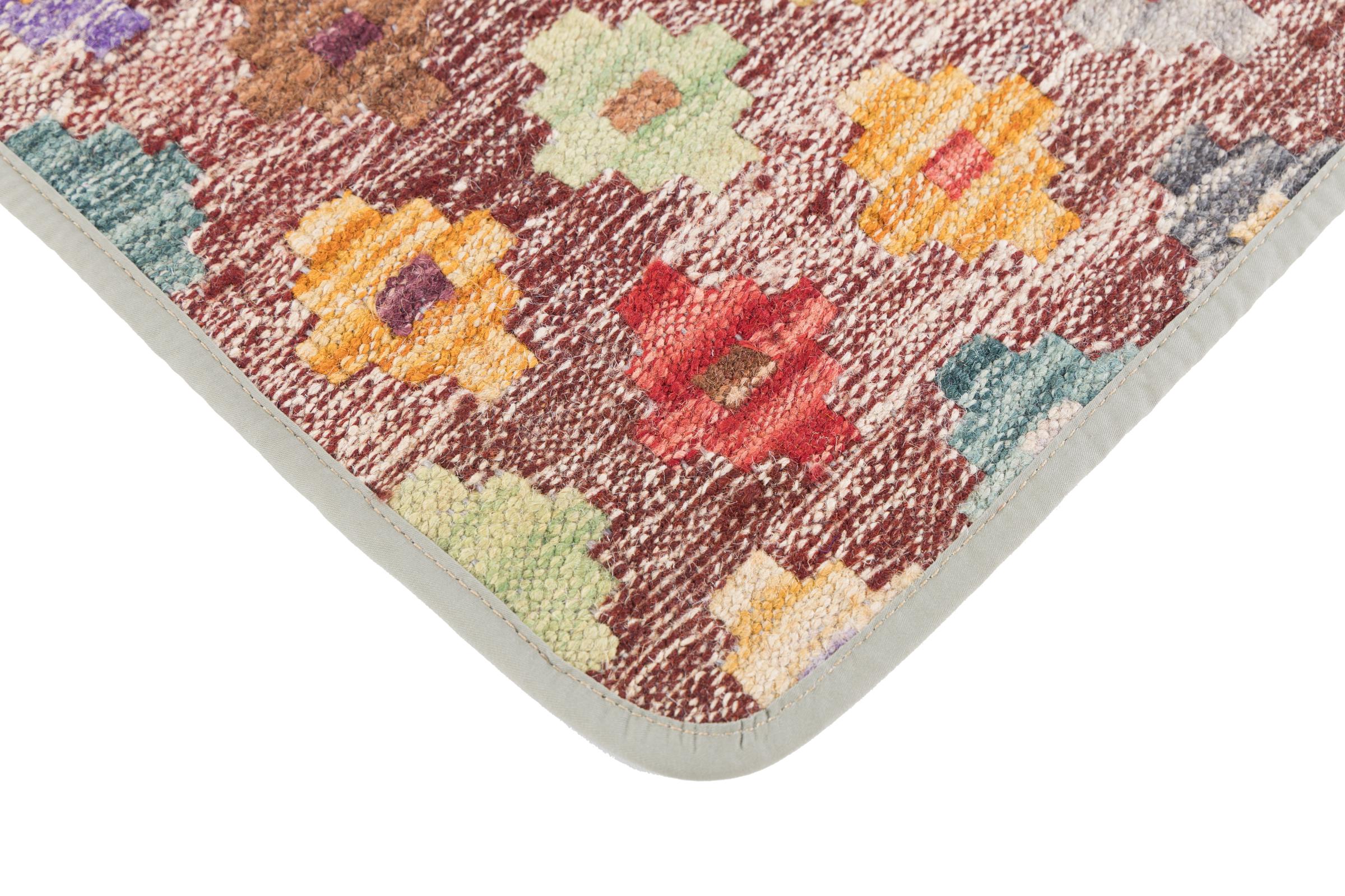 This handwoven Kilim Afghan is a wonderful and unique piece of art. Hard to believe that these modern colours and patterns have already been used centuries ago. This carpet has been woven by hand in old tradition in Afghanistan. It delivers a portion of contemporary history, which you won't find in this specific design a second time. It consists of high-grade natural wool and gives your home a personalised touch.