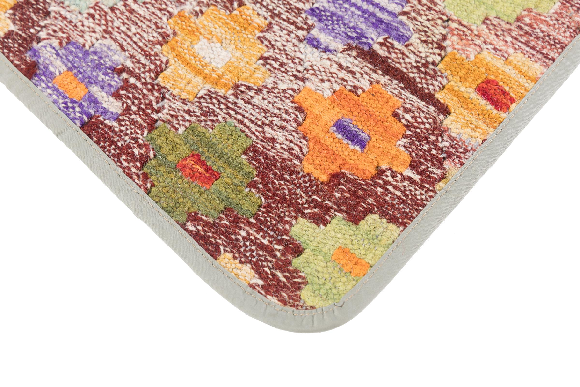 This handwoven Kilim Afghan is a wonderful and unique piece of art. Hard to believe that these modern colours and patterns have already been used centuries ago. This carpet has been woven by hand in old tradition in Afghanistan. It delivers a portion of contemporary history, which you won't find in this specific design a second time. It consists of high-grade natural wool and gives your home a personalised touch.