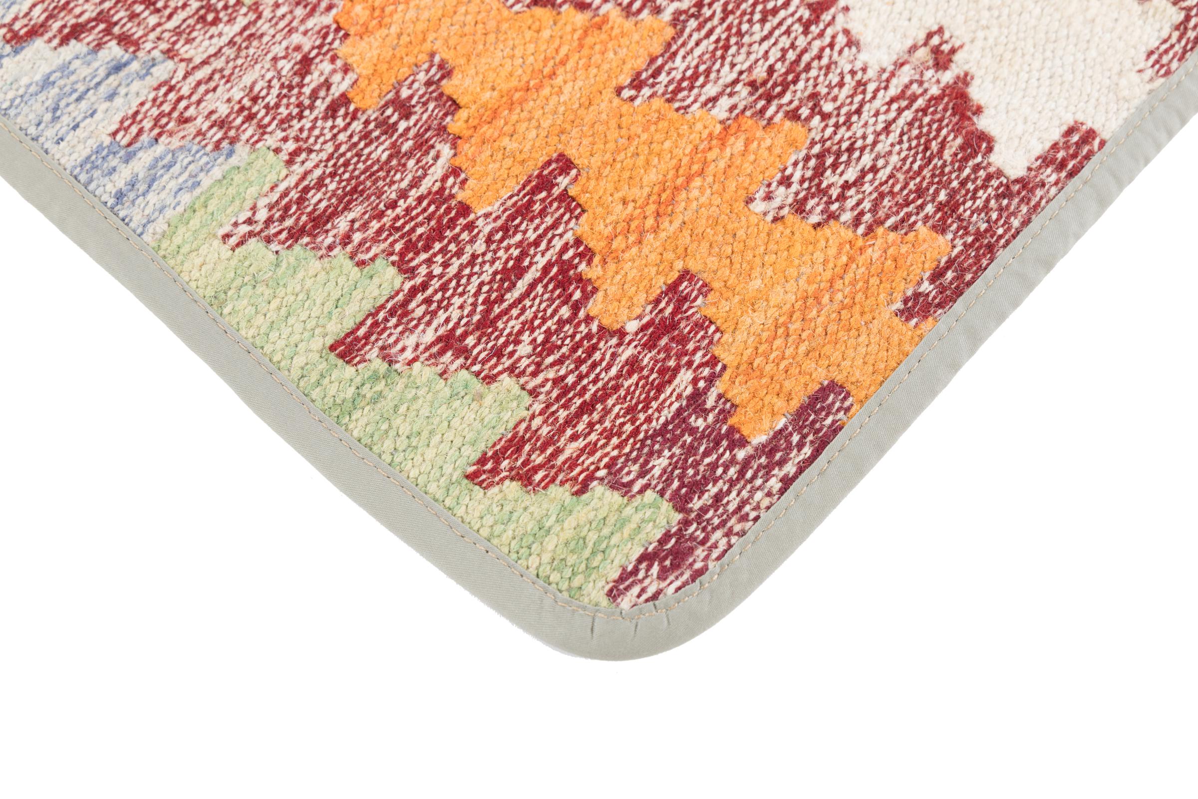 This handwoven Kilim Afghan is a wonderful and unique piece of art. Hard to believe that these modern colours and patterns have already been used centuries ago. This carpet has been woven by hand in old tradition in Afghanistan. It delivers a portion of contemporary history, which you won't find in this specific design a second time. It consists of high-grade natural wool and gives your home a personalised touch.
