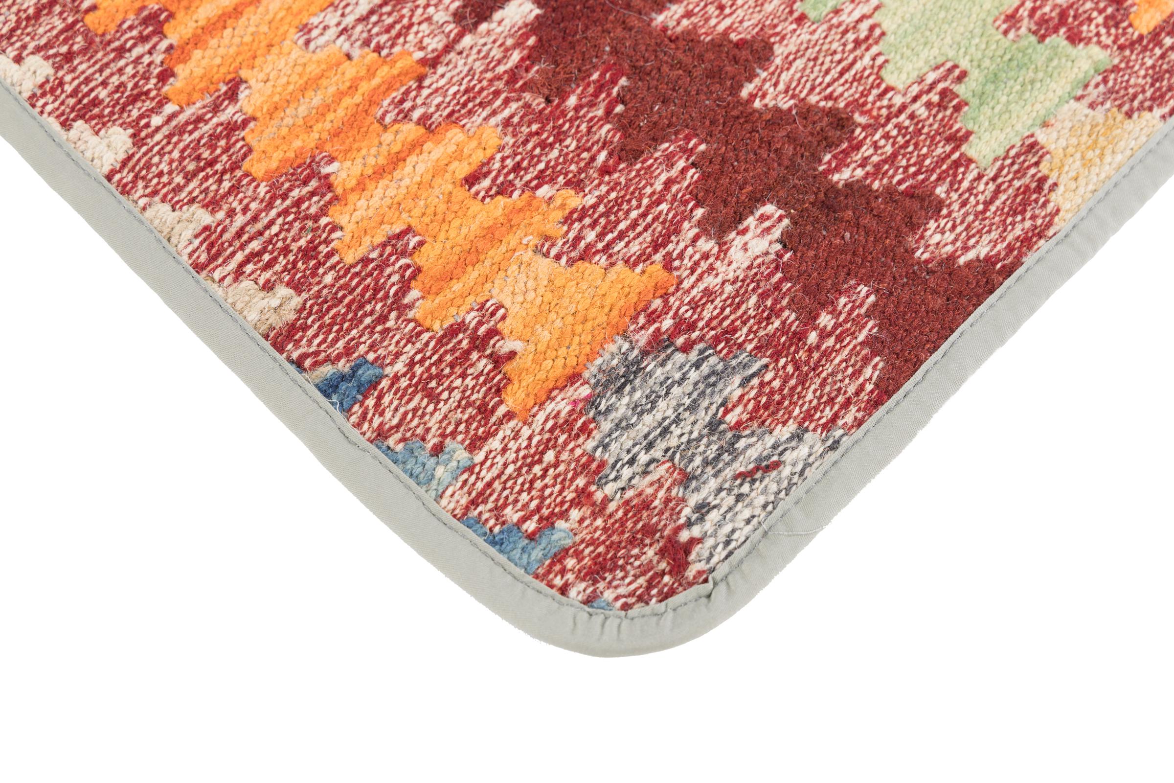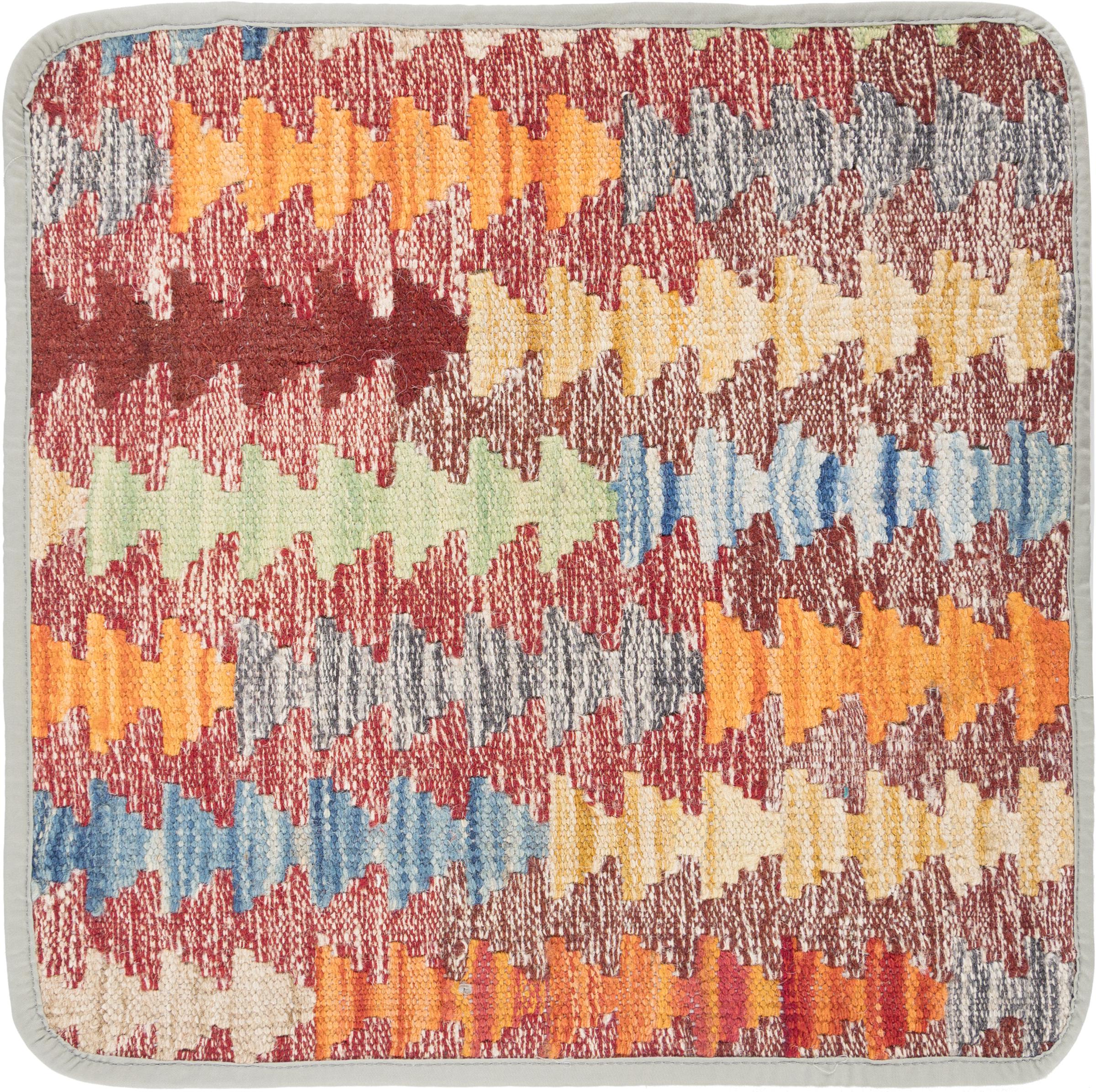 This handwoven Kilim Afghan is a wonderful and unique piece of art. Hard to believe that these modern colours and patterns have already been used centuries ago. This carpet has been woven by hand in old tradition in Afghanistan. It delivers a portion of contemporary history, which you won't find in this specific design a second time. It consists of high-grade natural wool and gives your home a personalised touch.