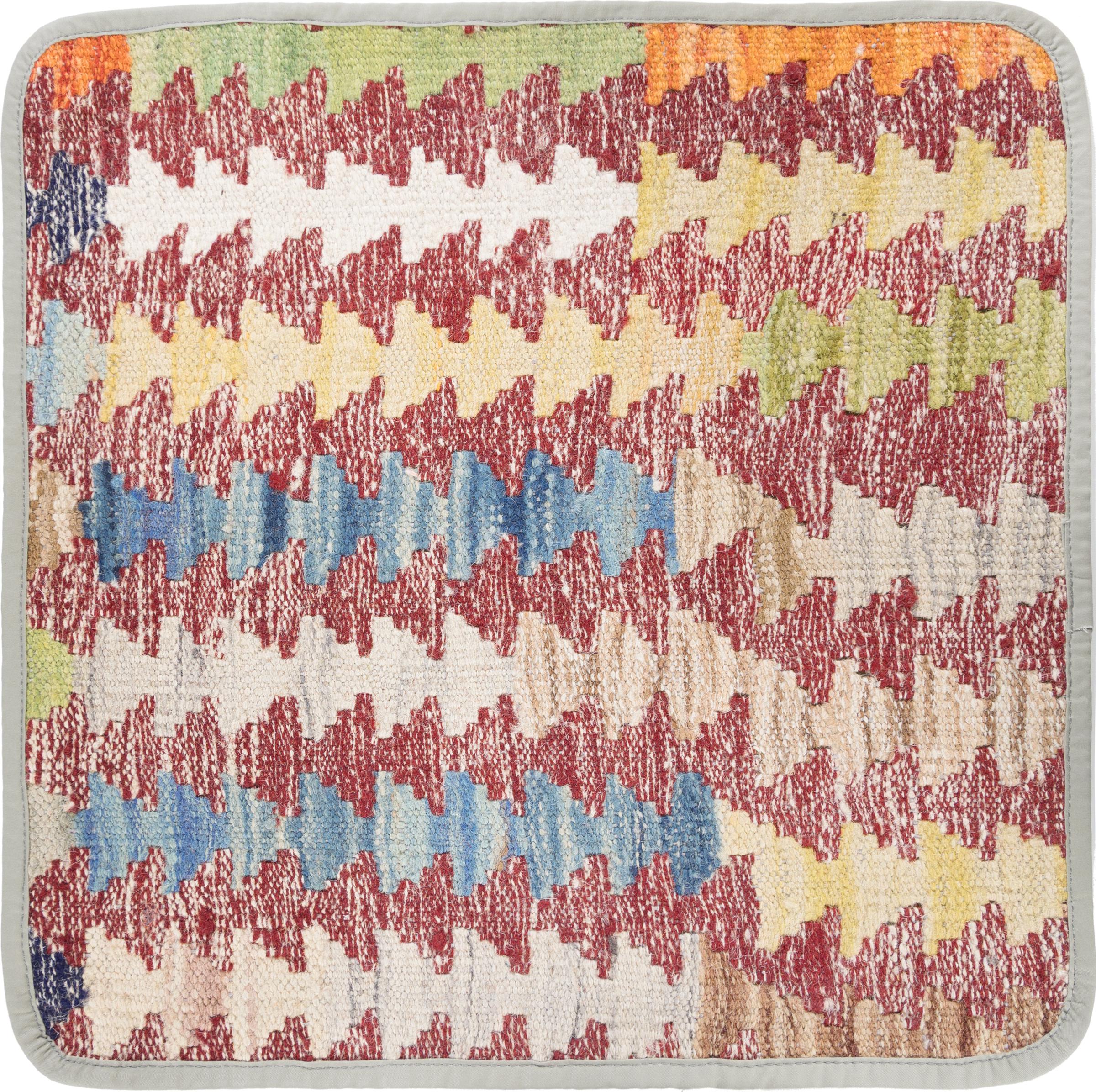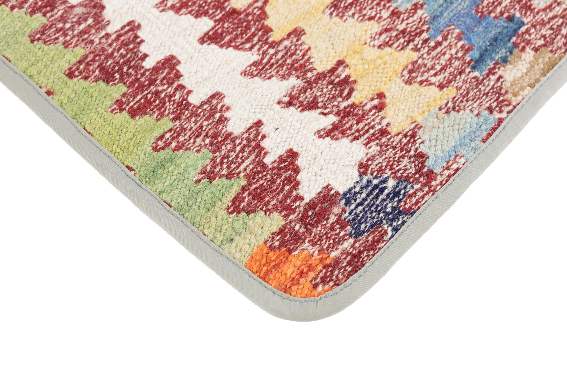 This handwoven Kilim Afghan is a wonderful and unique piece of art. Hard to believe that these modern colours and patterns have already been used centuries ago. This carpet has been woven by hand in old tradition in Afghanistan. It delivers a portion of contemporary history, which you won't find in this specific design a second time. It consists of high-grade natural wool and gives your home a personalised touch.
