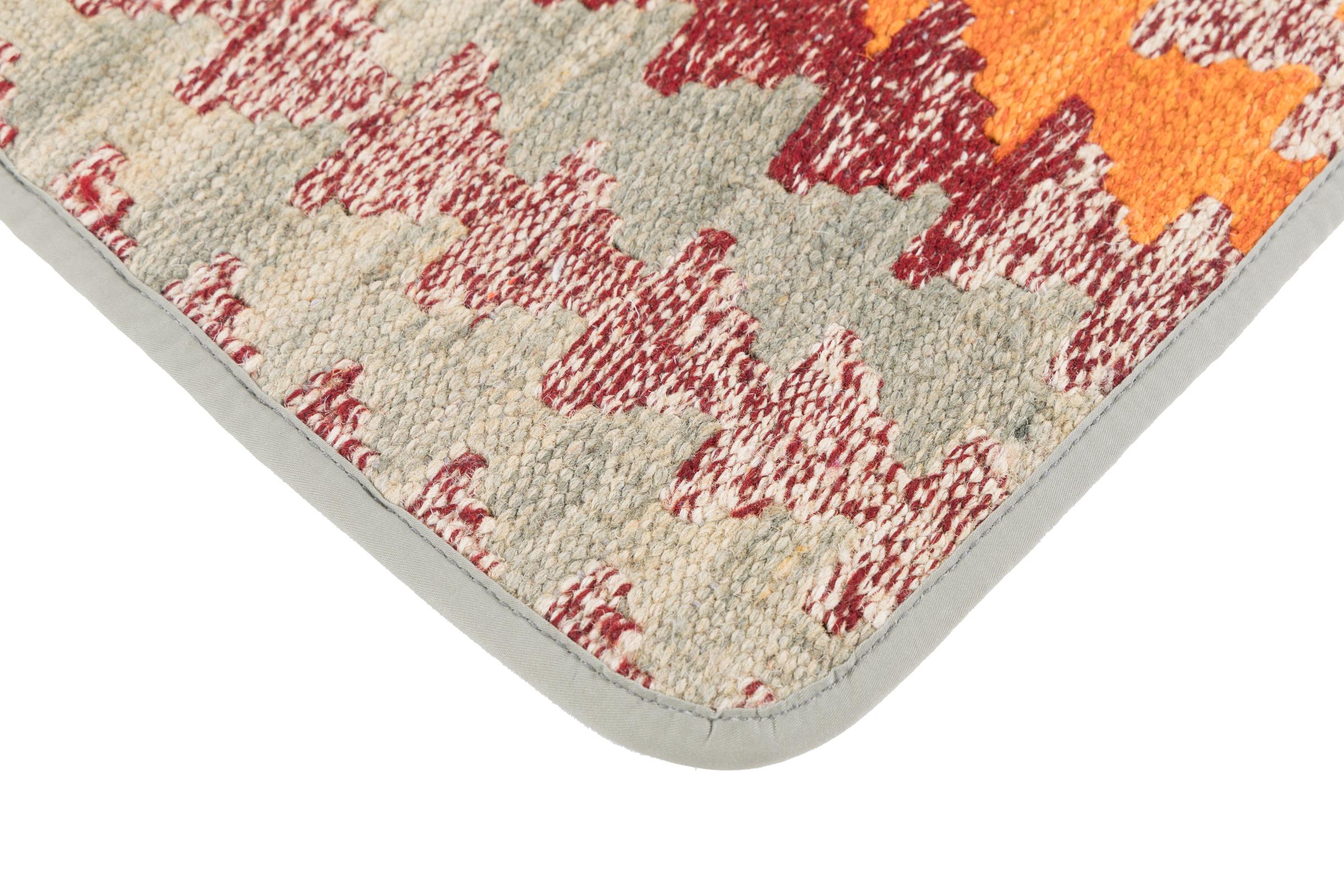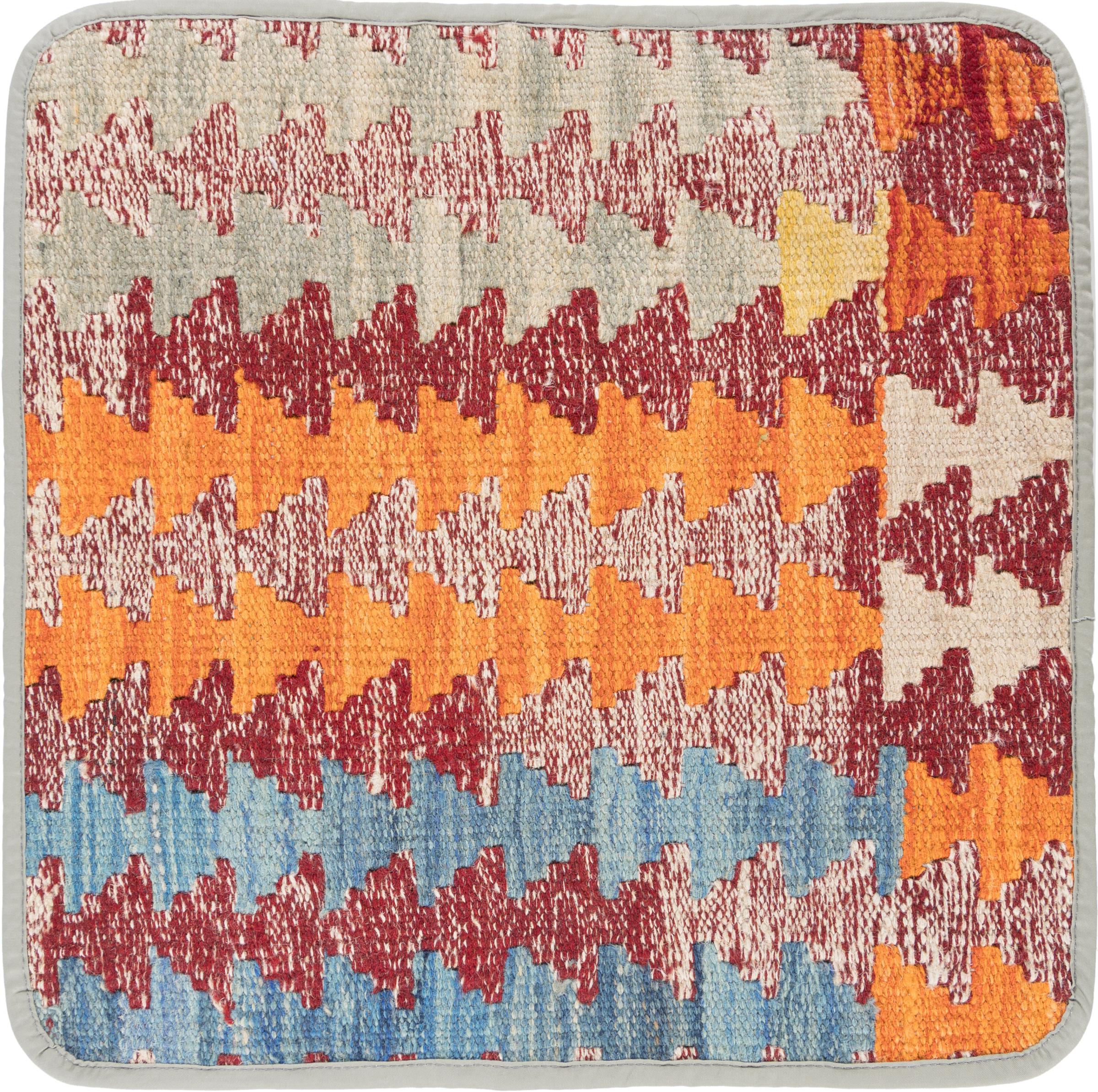This handwoven Kilim Afghan is a wonderful and unique piece of art. Hard to believe that these modern colours and patterns have already been used centuries ago. This carpet has been woven by hand in old tradition in Afghanistan. It delivers a portion of contemporary history, which you won't find in this specific design a second time. It consists of high-grade natural wool and gives your home a personalised touch.