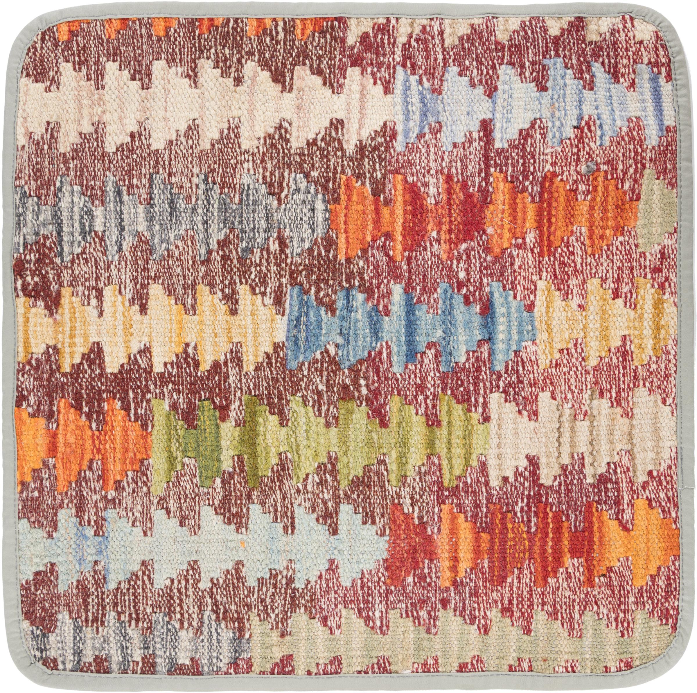 This handwoven Kilim Afghan is a wonderful and unique piece of art. Hard to believe that these modern colours and patterns have already been used centuries ago. This carpet has been woven by hand in old tradition in Afghanistan. It delivers a portion of contemporary history, which you won't find in this specific design a second time. It consists of high-grade natural wool and gives your home a personalised touch.