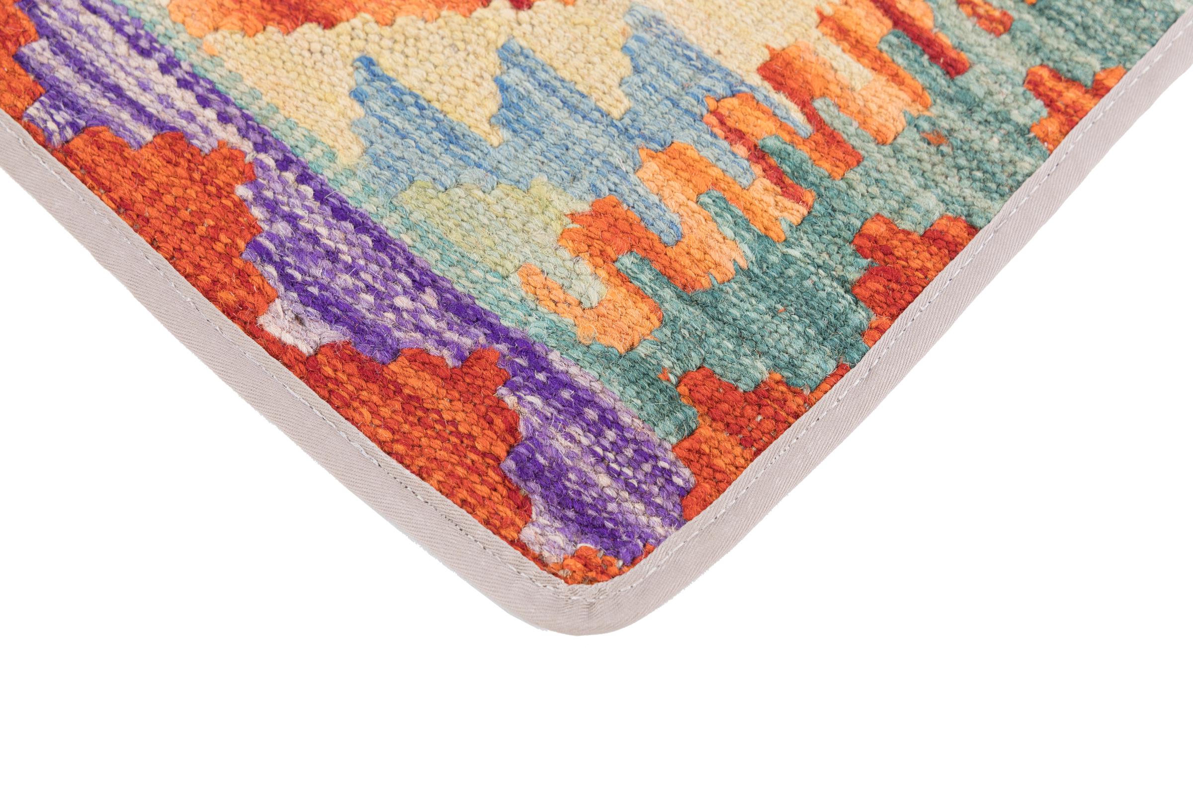 This handwoven Kilim Afghan is a wonderful and unique piece of art. Hard to believe that these modern colours and patterns have already been used centuries ago. This carpet has been woven by hand in old tradition in Afghanistan. It delivers a portion of contemporary history, which you won't find in this specific design a second time. It consists of high-grade natural wool and gives your home a personalised touch.