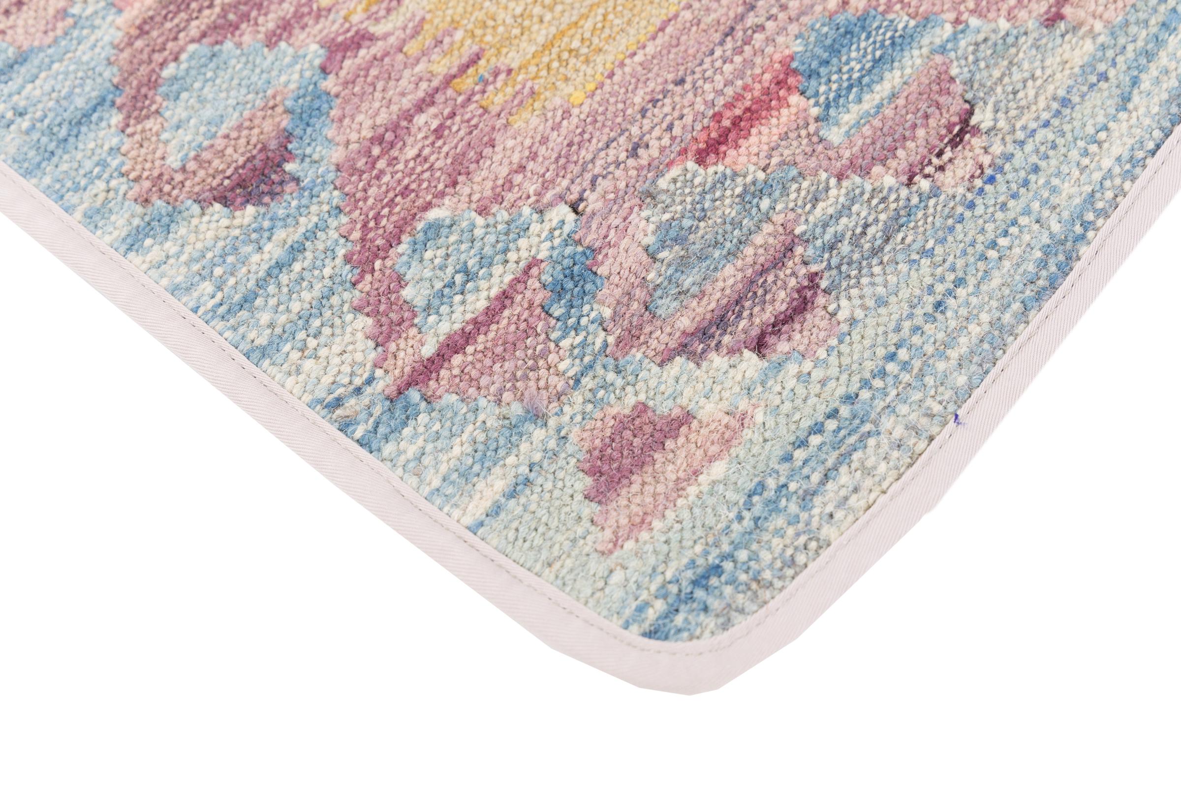 This handwoven Kilim Afghan is a wonderful and unique piece of art. Hard to believe that these modern colours and patterns have already been used centuries ago. This carpet has been woven by hand in old tradition in Afghanistan. It delivers a portion of contemporary history, which you won't find in this specific design a second time. It consists of high-grade natural wool and gives your home a personalised touch.