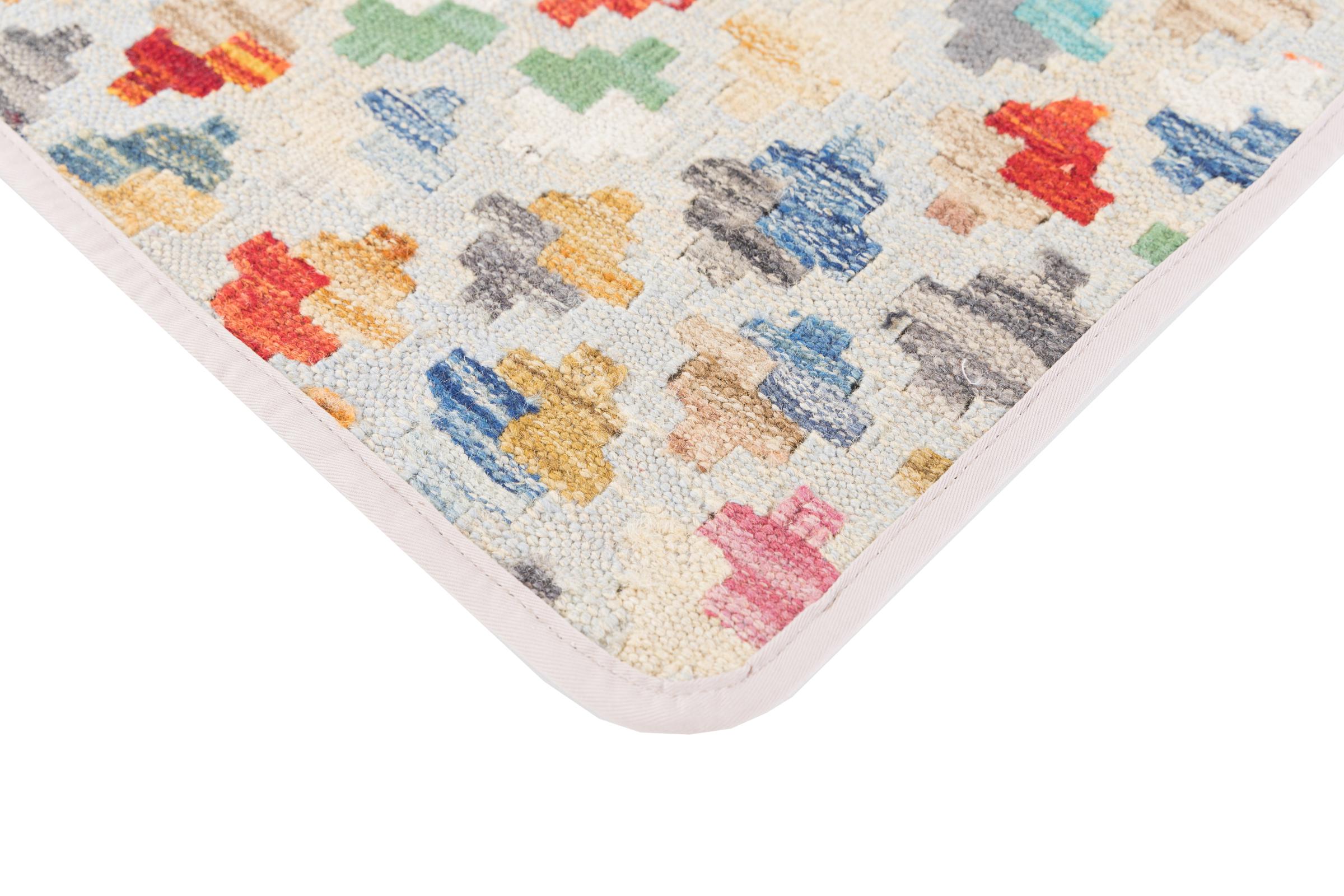 This handwoven Kilim Afghan is a wonderful and unique piece of art. Hard to believe that these modern colours and patterns have already been used centuries ago. This carpet has been woven by hand in old tradition in Afghanistan. It delivers a portion of contemporary history, which you won't find in this specific design a second time. It consists of high-grade natural wool and gives your home a personalised touch.
