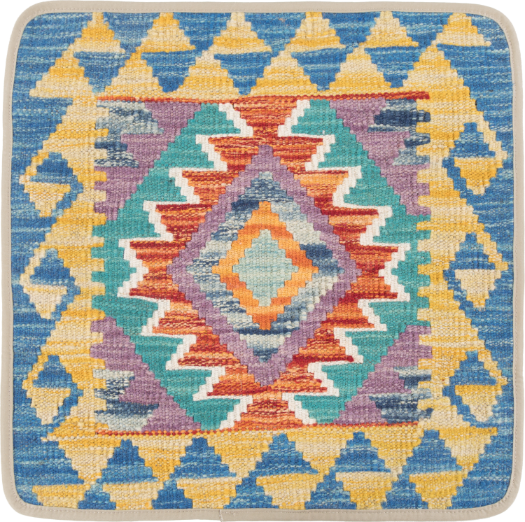 This handwoven Kilim Afghan is a wonderful and unique piece of art. Hard to believe that these modern colours and patterns have already been used centuries ago. This carpet has been woven by hand in old tradition in Afghanistan. It delivers a portion of contemporary history, which you won't find in this specific design a second time. It consists of high-grade natural wool and gives your home a personalised touch.