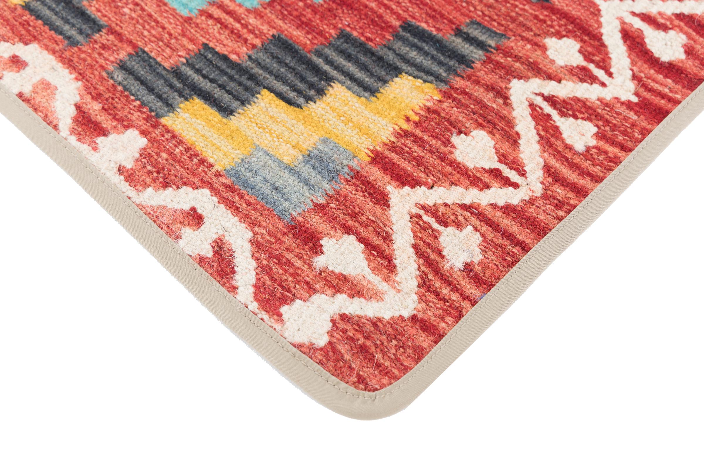 These kilim rugs show a decisive difference to hand-knotted rugs - they are woven by hand. Thus, they do not have a high pile of wool and are often flatter and rougher than knotted wool rugs. Their making is less elaborate and so they are usually much more affordable. As an advantage, kilim rugs are also much lighter and can be laid out from the front and back side. Hand-woven kilims originally come from the former Persia and are now also often made in Afghanistan. They have rather simple, straightforward patterns, which are determined by their weaving technique.