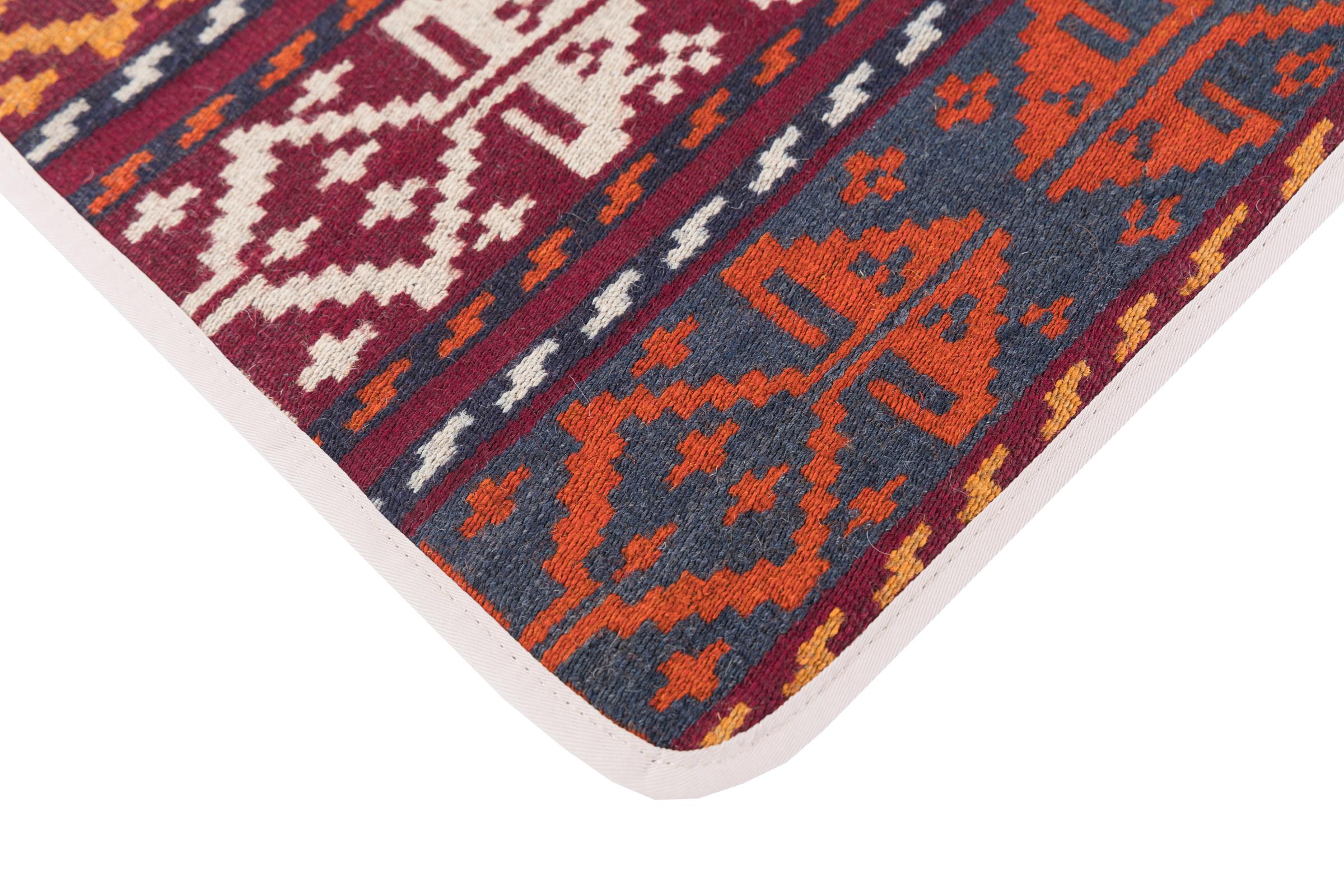These kilim rugs show a decisive difference to hand-knotted rugs - they are woven by hand. Thus, they do not have a high pile of wool and are often flatter and rougher than knotted wool rugs. Their making is less elaborate and so they are usually much more affordable. As an advantage, kilim rugs are also much lighter and can be laid out from the front and back side. Hand-woven kilims originally come from the former Persia and are now also often made in Afghanistan. They have rather simple, straightforward patterns, which are determined by their weaving technique.