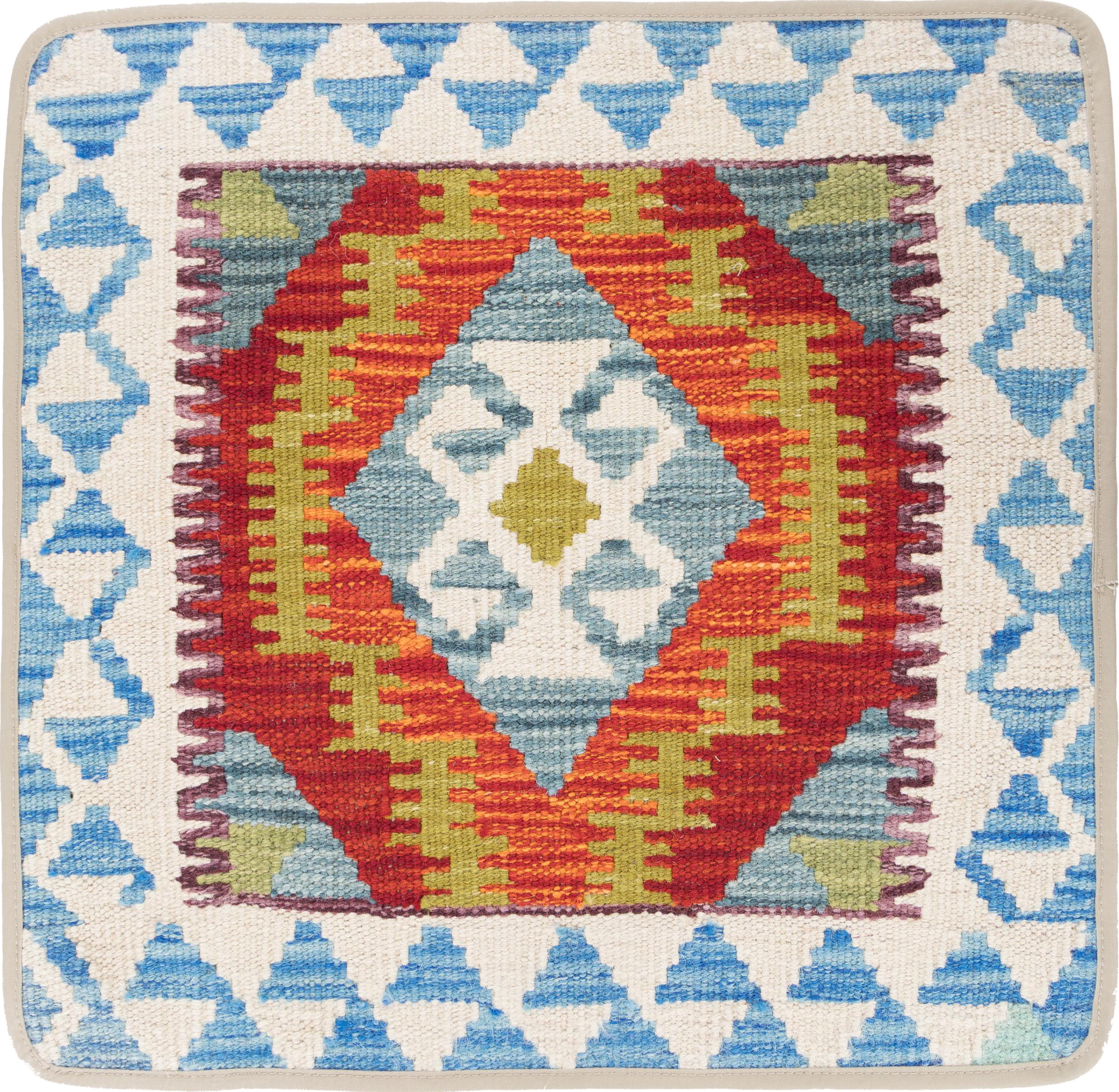 This handwoven Kilim Afghan is a wonderful and unique piece of art. Hard to believe that these modern colours and patterns have already been used centuries ago. This carpet has been woven by hand in old tradition in Afghanistan. It delivers a portion of contemporary history, which you won't find in this specific design a second time. It consists of high-grade natural wool and gives your home a personalised touch.