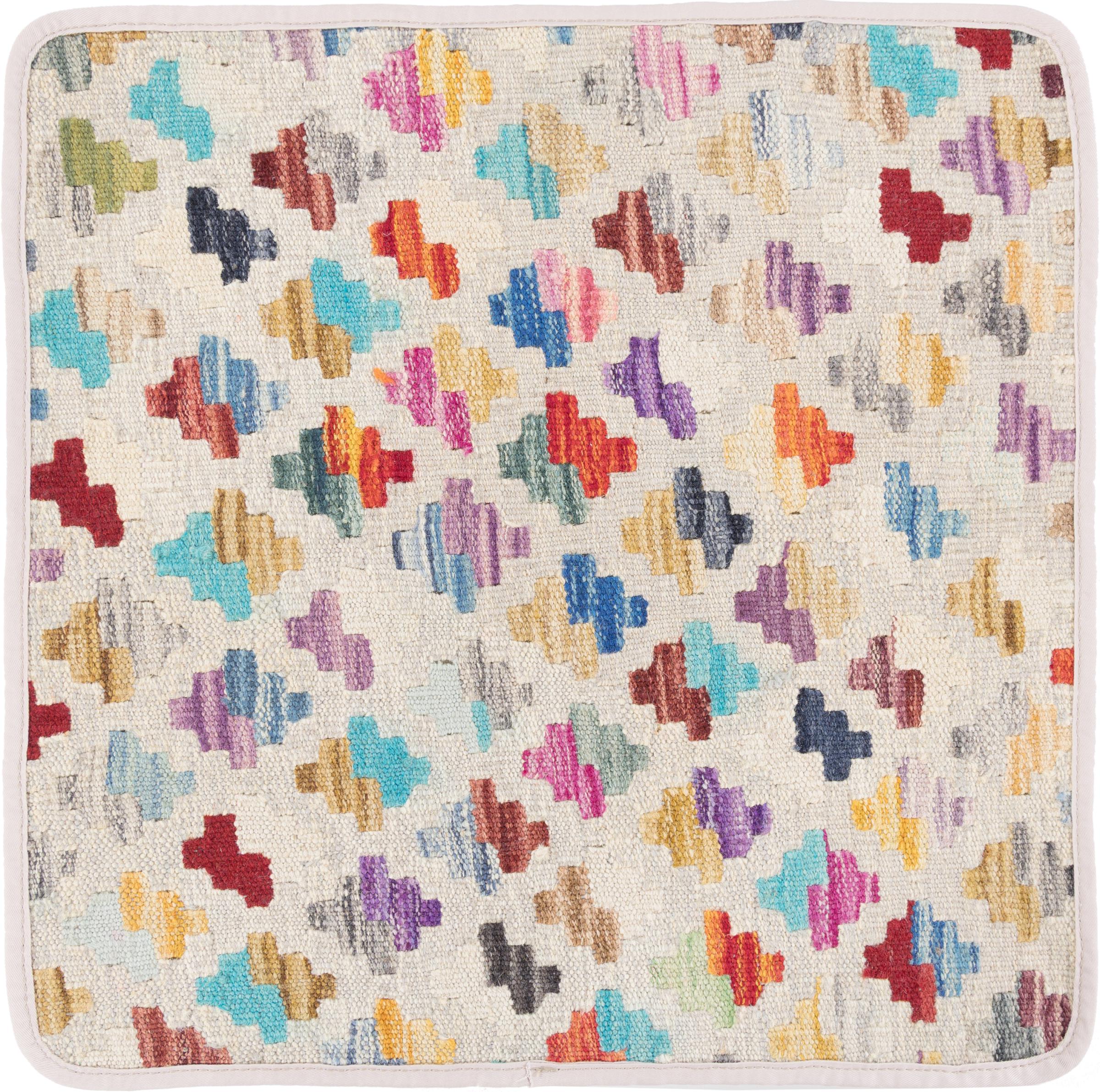 This handwoven Kilim Afghan is a wonderful and unique piece of art. Hard to believe that these modern colours and patterns have already been used centuries ago. This carpet has been woven by hand in old tradition in Afghanistan. It delivers a portion of contemporary history, which you won't find in this specific design a second time. It consists of high-grade natural wool and gives your home a personalised touch.