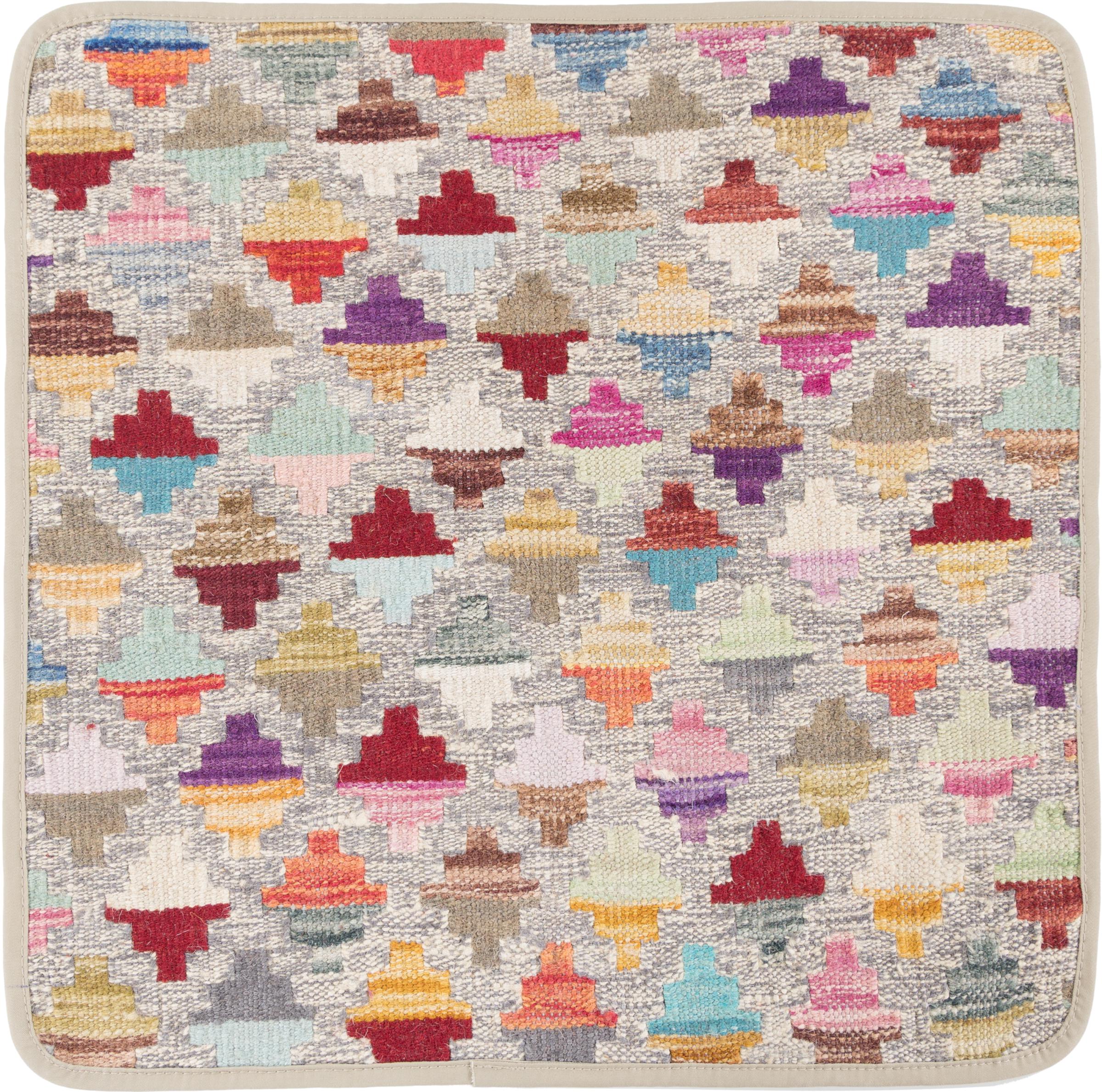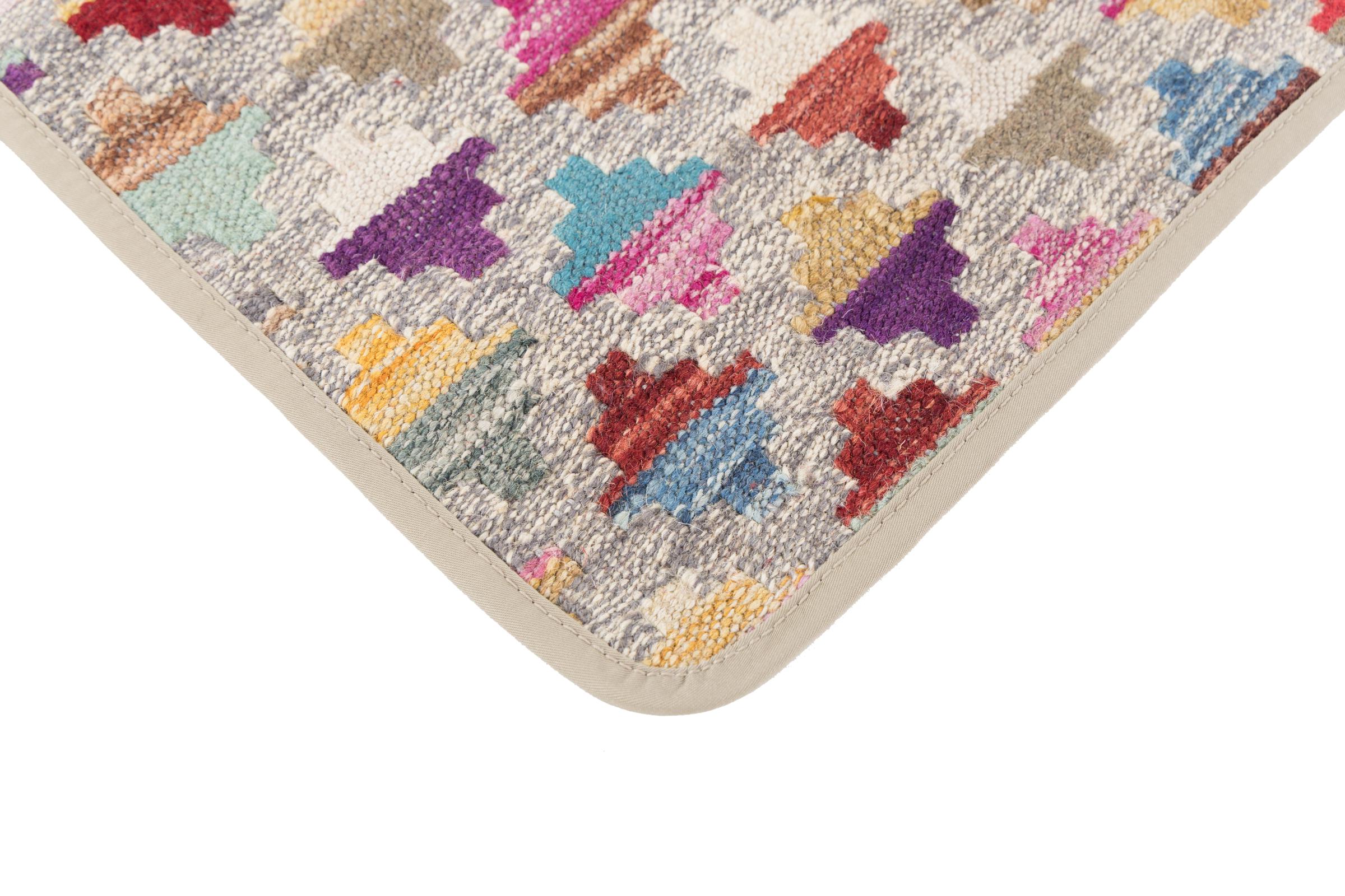 This handwoven Kilim Afghan is a wonderful and unique piece of art. Hard to believe that these modern colours and patterns have already been used centuries ago. This carpet has been woven by hand in old tradition in Afghanistan. It delivers a portion of contemporary history, which you won't find in this specific design a second time. It consists of high-grade natural wool and gives your home a personalised touch.