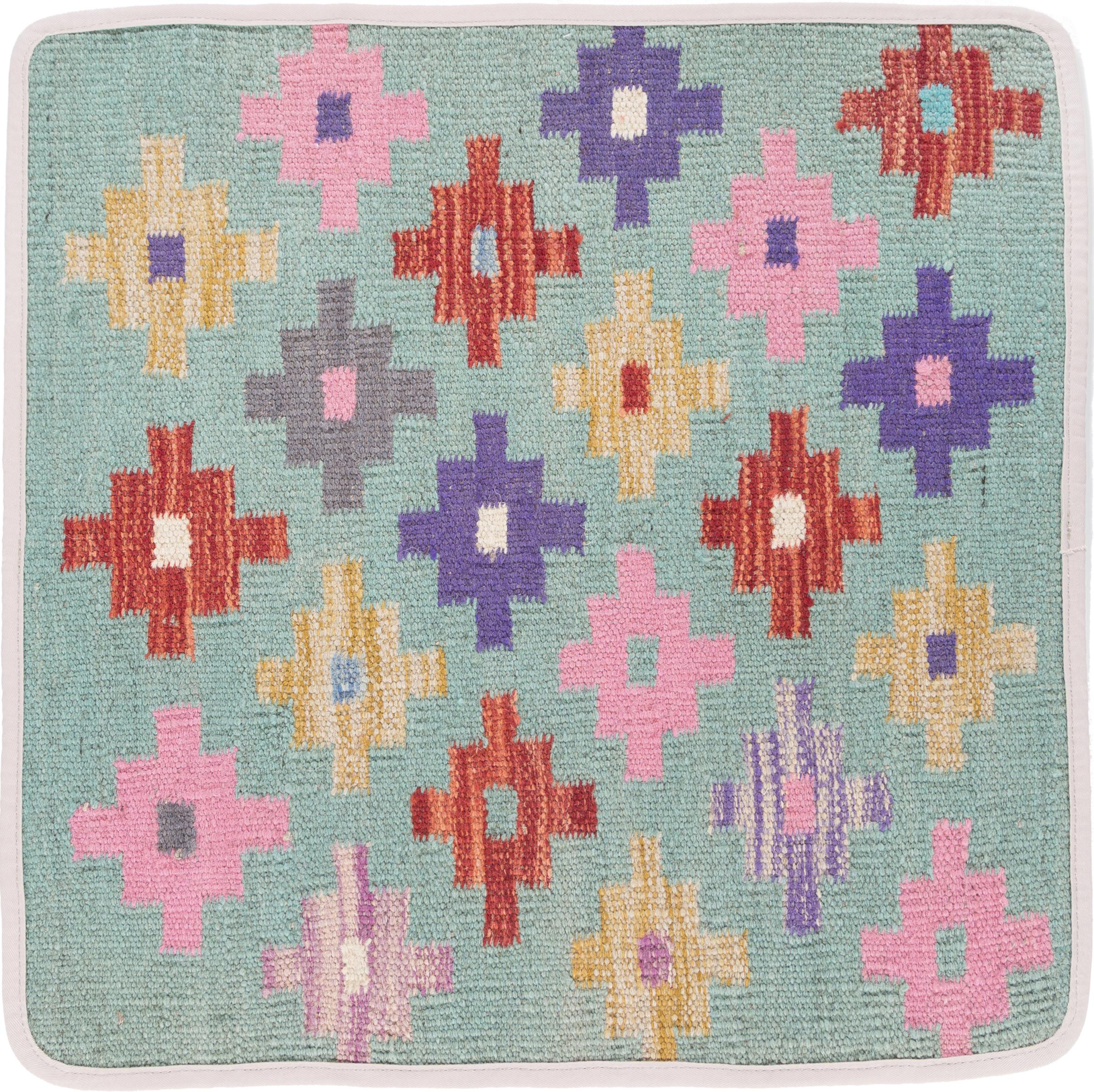 This handwoven Kilim Afghan is a wonderful and unique piece of art. Hard to believe that these modern colours and patterns have already been used centuries ago. This carpet has been woven by hand in old tradition in Afghanistan. It delivers a portion of contemporary history, which you won't find in this specific design a second time. It consists of high-grade natural wool and gives your home a personalised touch.