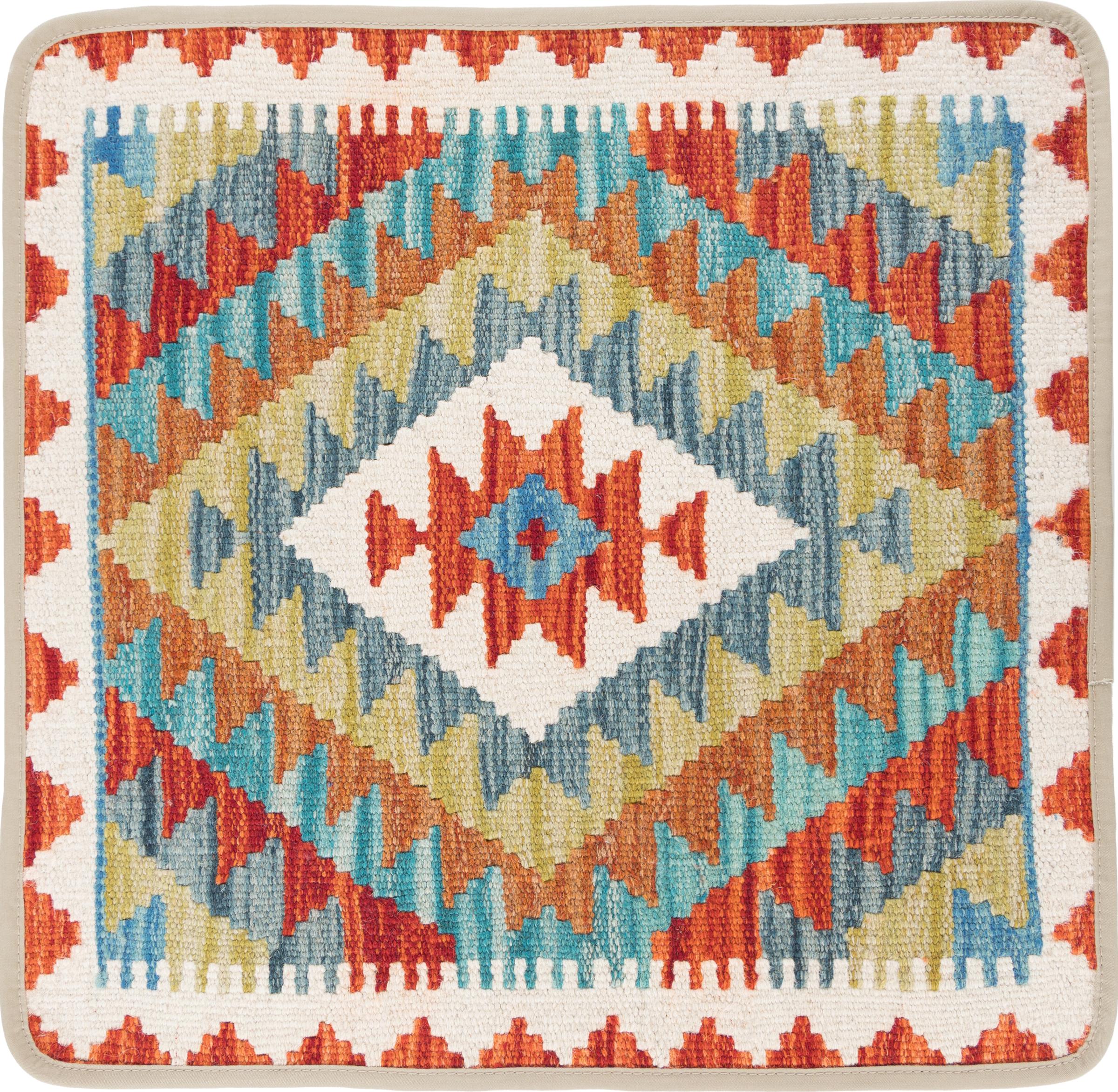 This handwoven Kilim Afghan is a wonderful and unique piece of art. Hard to believe that these modern colours and patterns have already been used centuries ago. This carpet has been woven by hand in old tradition in Afghanistan. It delivers a portion of contemporary history, which you won't find in this specific design a second time. It consists of high-grade natural wool and gives your home a personalised touch.