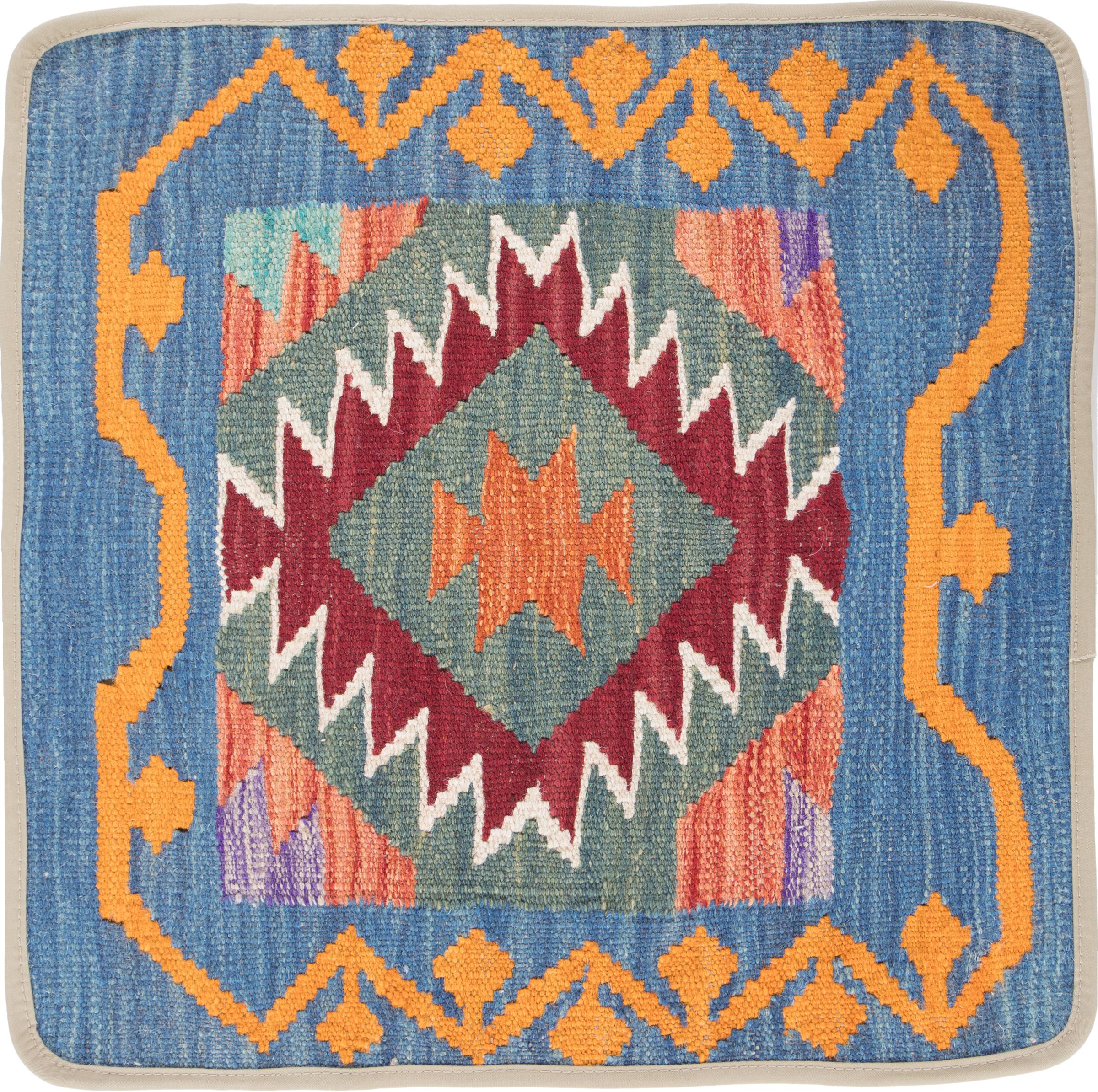 This handwoven Kilim Afghan is a wonderful and unique piece of art. Hard to believe that these modern colours and patterns have already been used centuries ago. This carpet has been woven by hand in old tradition in Afghanistan. It delivers a portion of contemporary history, which you won't find in this specific design a second time. It consists of high-grade natural wool and gives your home a personalised touch.