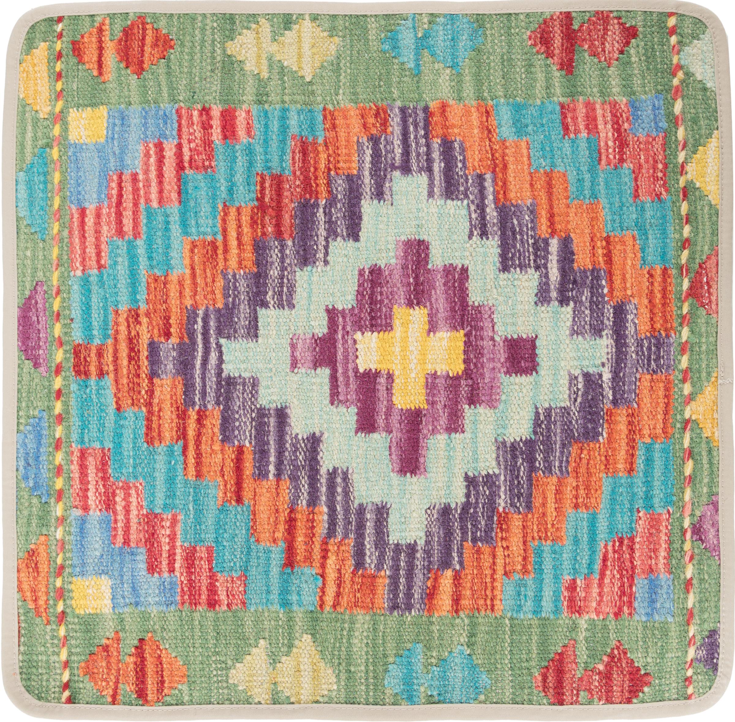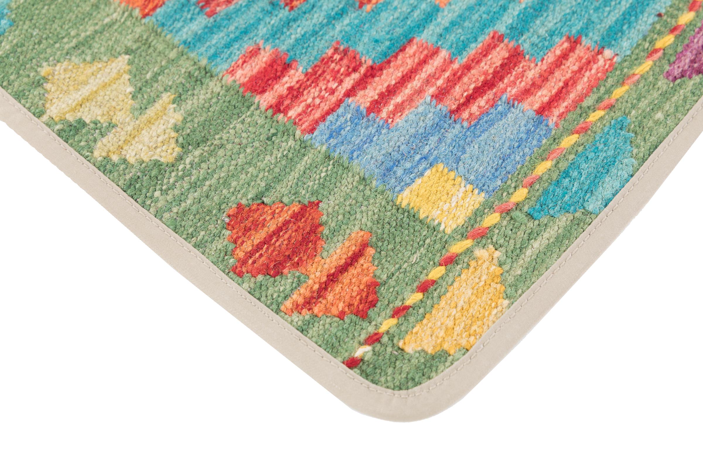 This handwoven Kilim Afghan is a wonderful and unique piece of art. Hard to believe that these modern colours and patterns have already been used centuries ago. This carpet has been woven by hand in old tradition in Afghanistan. It delivers a portion of contemporary history, which you won't find in this specific design a second time. It consists of high-grade natural wool and gives your home a personalised touch.
