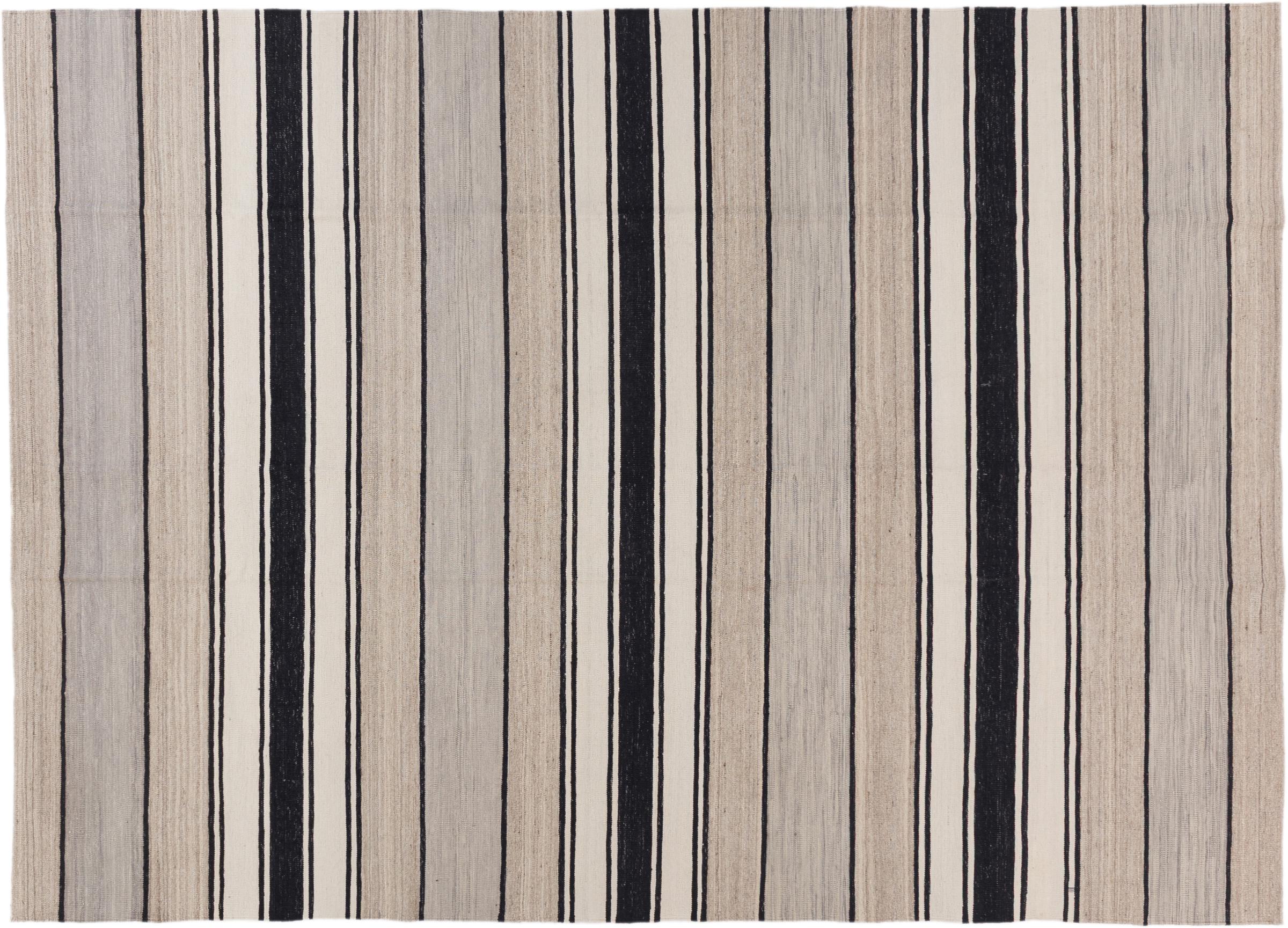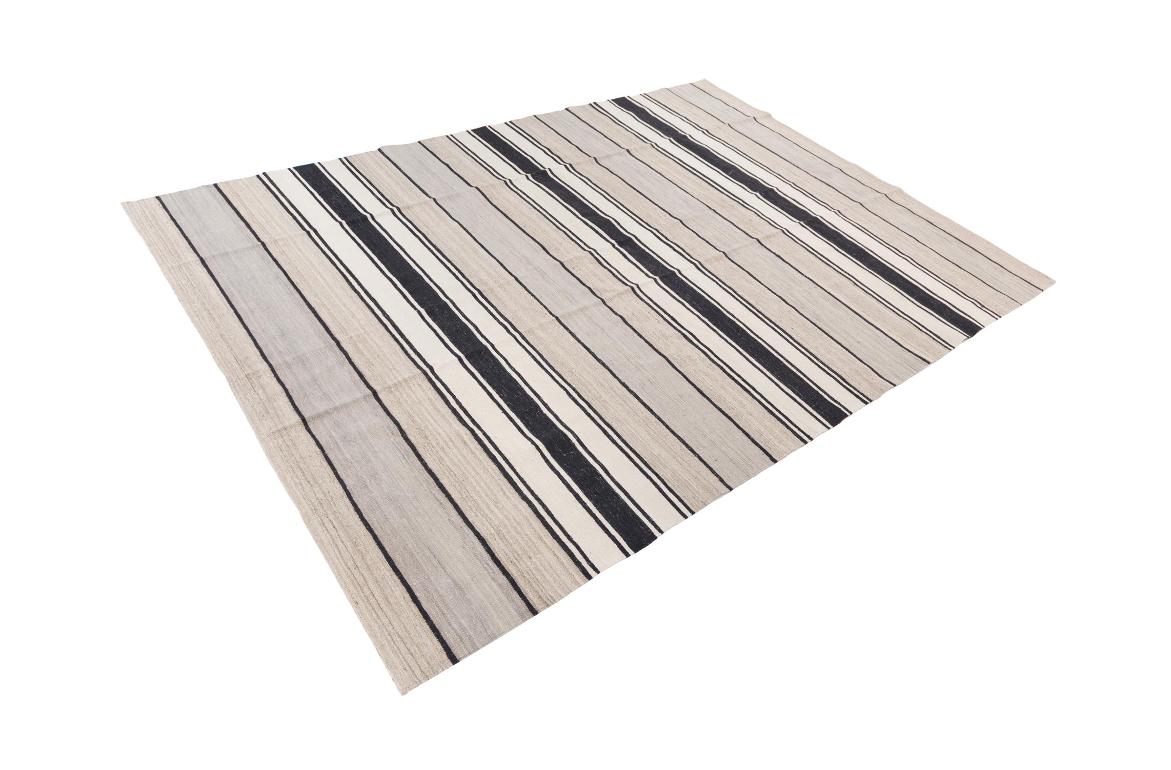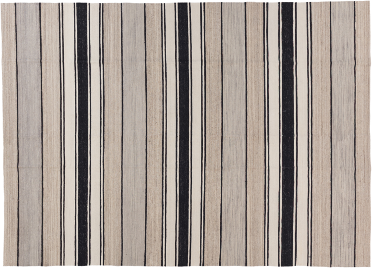 This rug was made as a flat weave by hand on a loom. Flatweave is the term used to describe rugs that have no pile. As the name promises, these rugs are woven and not knotted. This results in a flat rug with a structured surface. Flatweaves are not as soft and usually thinner than knotted rugs. At the same time they are much less complex to manufacture and can usually be laid out from both sides (front and back). Their patterns are usually geometric, which is determined by the fabric.