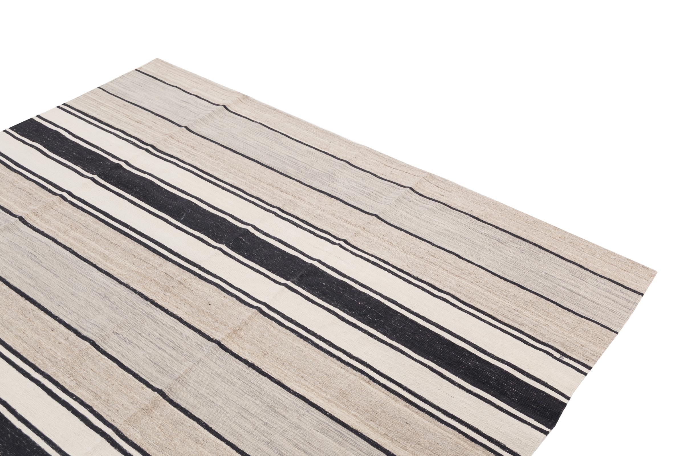 This handwoven Kilim Afghan is a wonderful and unique piece of art. Hard to believe that these modern colours and patterns have already been used centuries ago. This carpet has been woven by hand in old tradition in Afghanistan. It delivers a portion of contemporary history, which you won't find in this specific design a second time. It consists of high-grade natural wool and gives your home a personalised touch.