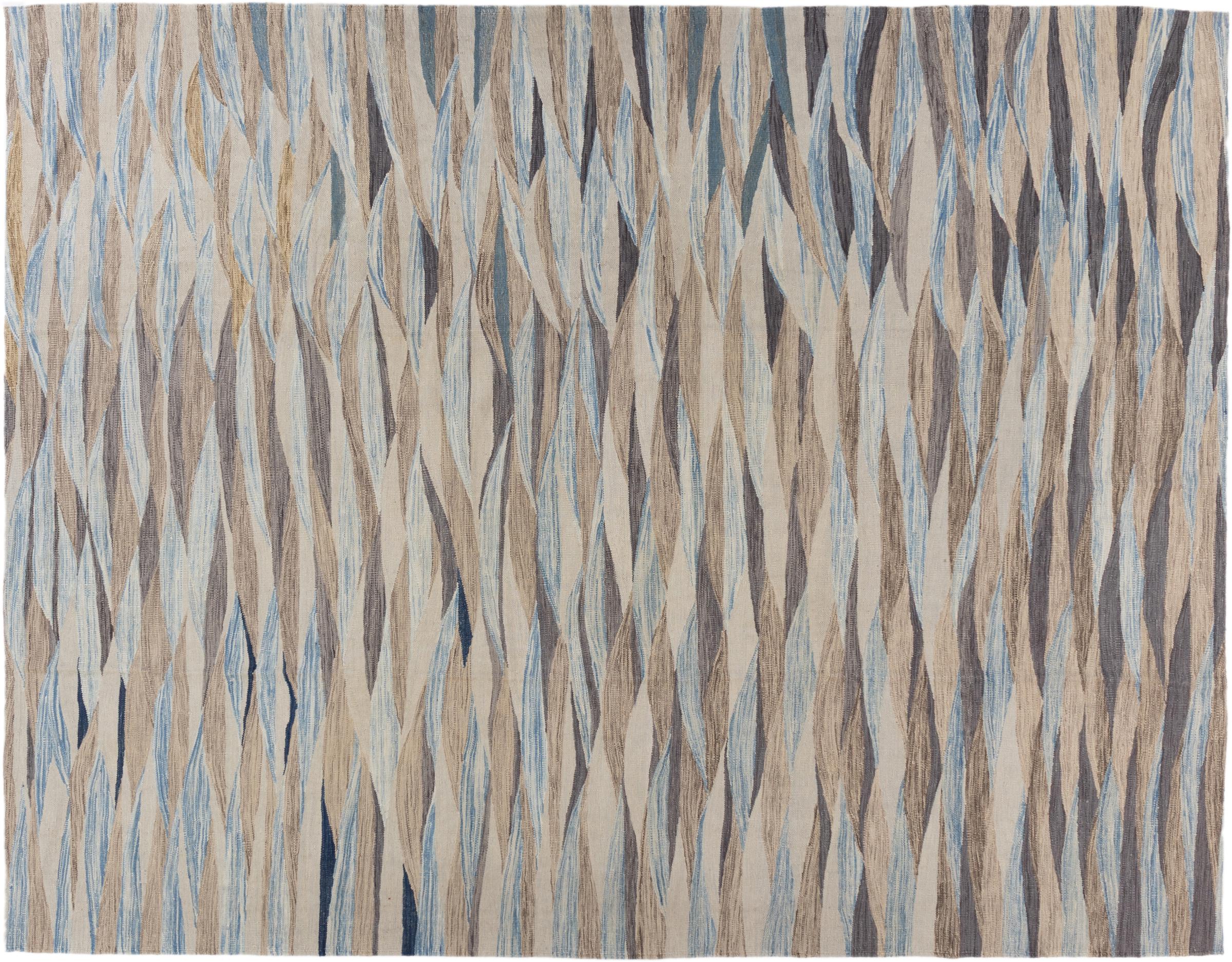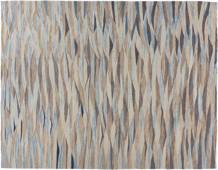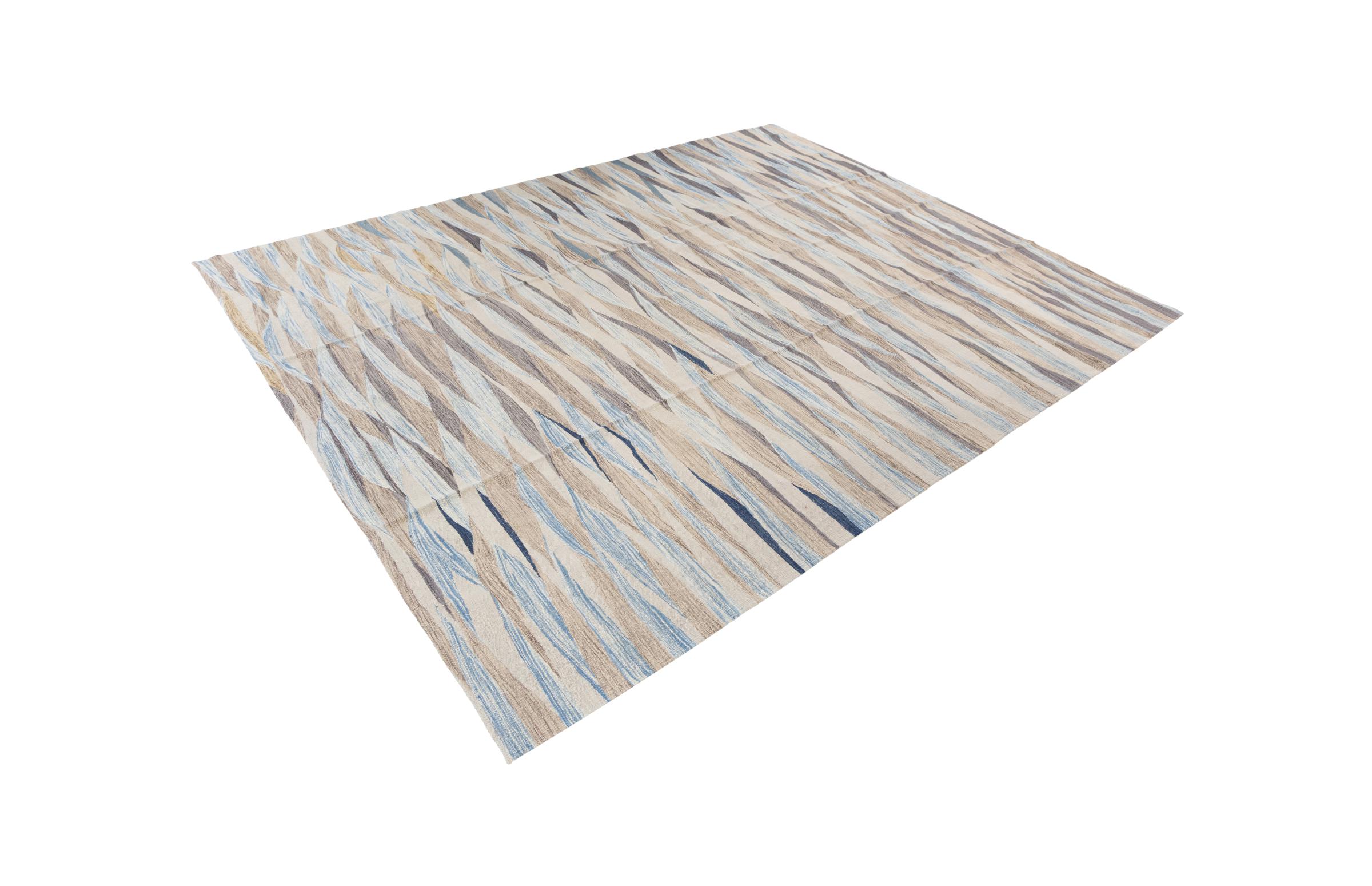 This rug was made as a flat weave by hand on a loom. Flatweave is the term used to describe rugs that have no pile. As the name promises, these rugs are woven and not knotted. This results in a flat rug with a structured surface. Flatweaves are not as soft and usually thinner than knotted rugs. At the same time they are much less complex to manufacture and can usually be laid out from both sides (front and back). Their patterns are usually geometric, which is determined by the fabric.