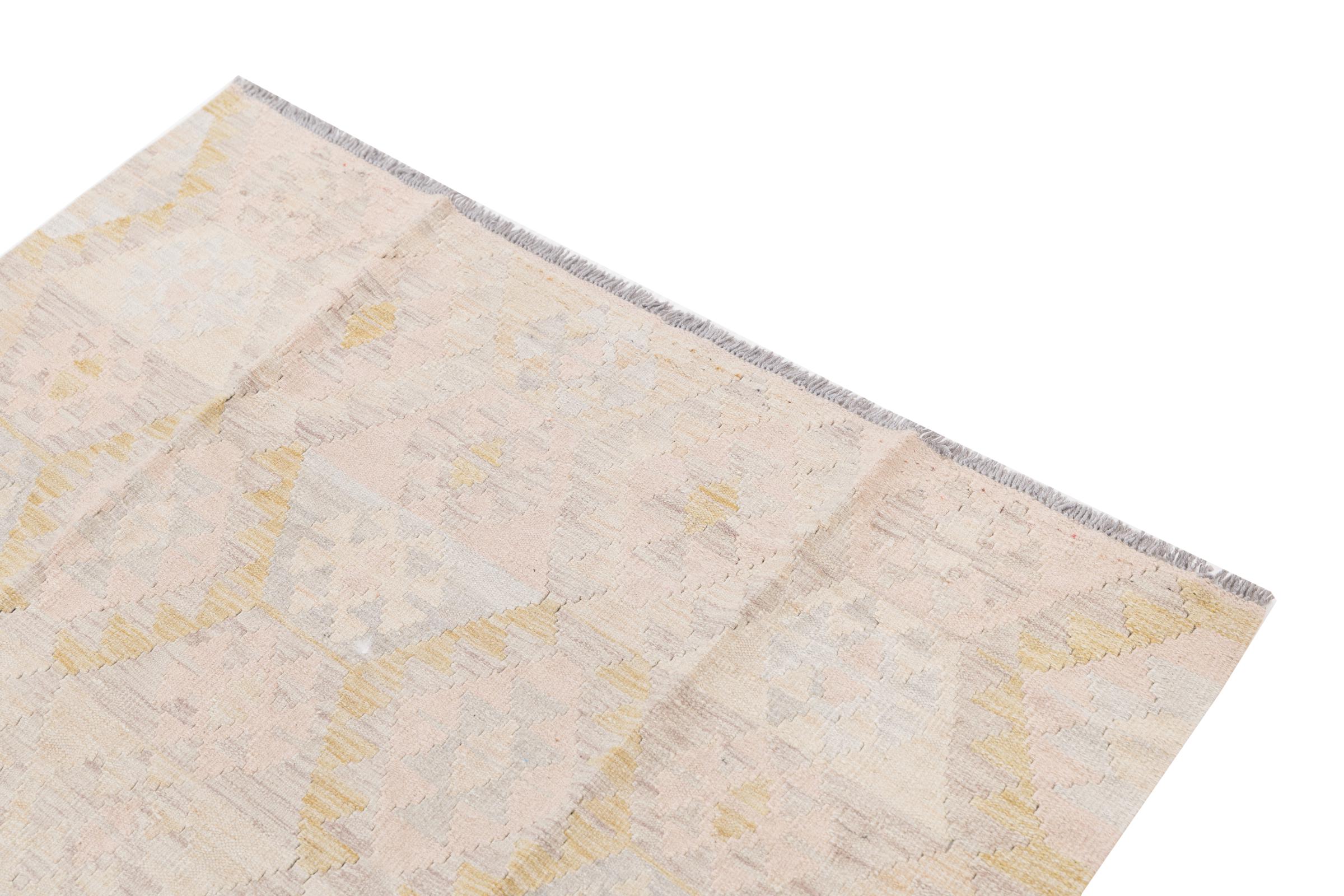 Our Kilim Afghan Heritage collection is in each and every detail exceptional. It combines the most traditional way of crafting a Kilim with contemporary modern design elements. Not only has this carpet been woven by hand, its wool has also been spun by hand like for Kilims centuries ago. The geometric patterns make this carpet a pure enrichment for modern interior concepts. It is going to deeply impress you and your guests. You won't get more value for your money than for this Kilim Heritage.