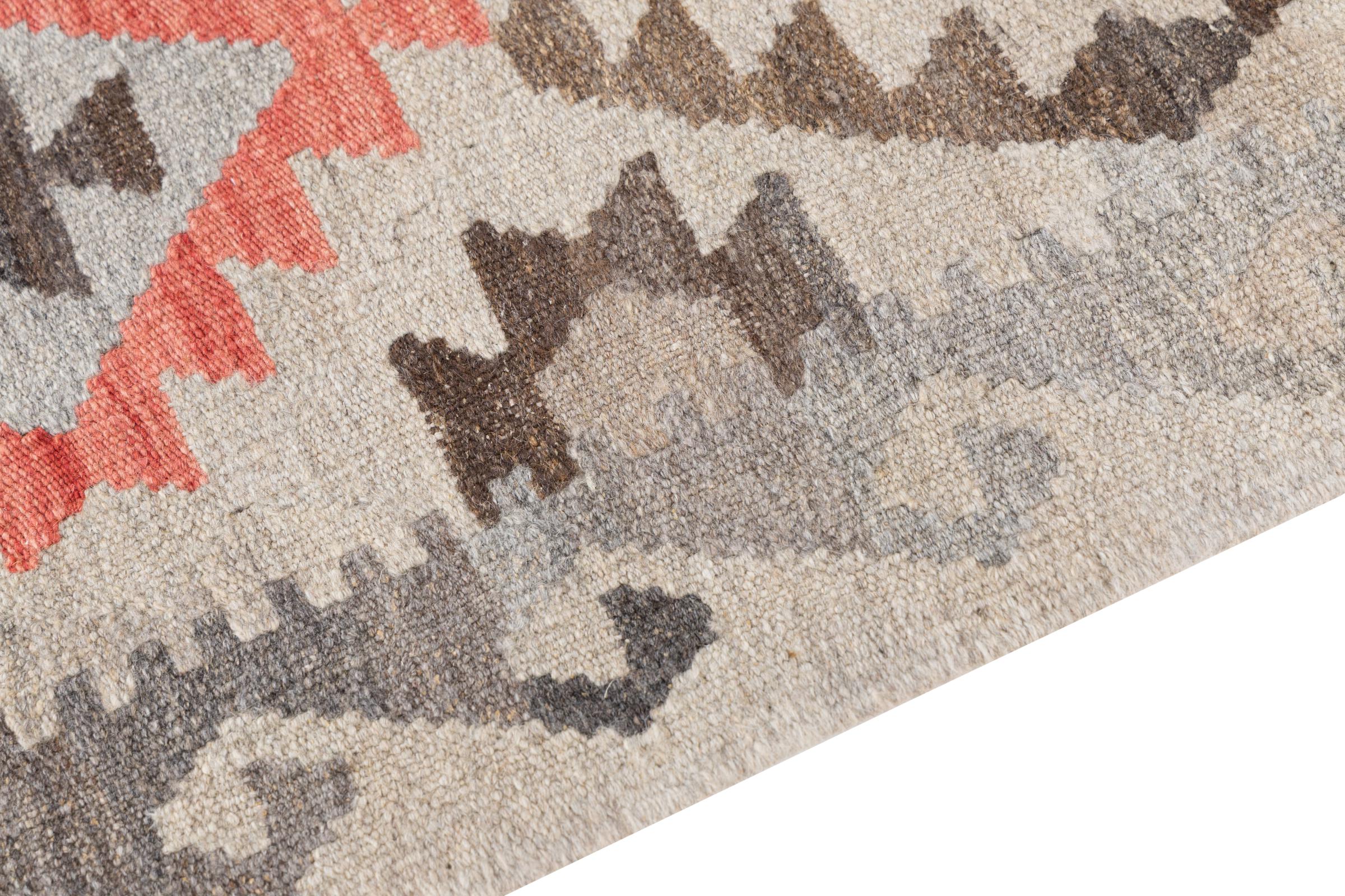 Our Kilim Afghan Heritage collection is in each and every detail exceptional. It combines the most traditional way of crafting a Kilim with contemporary modern design elements. Not only has this carpet been woven by hand, its wool has also been spun by hand like for Kilims centuries ago. The geometric patterns make this carpet a pure enrichment for modern interior concepts. It is going to deeply impress you and your guests. You won't get more value for your money than for this Kilim Heritage.